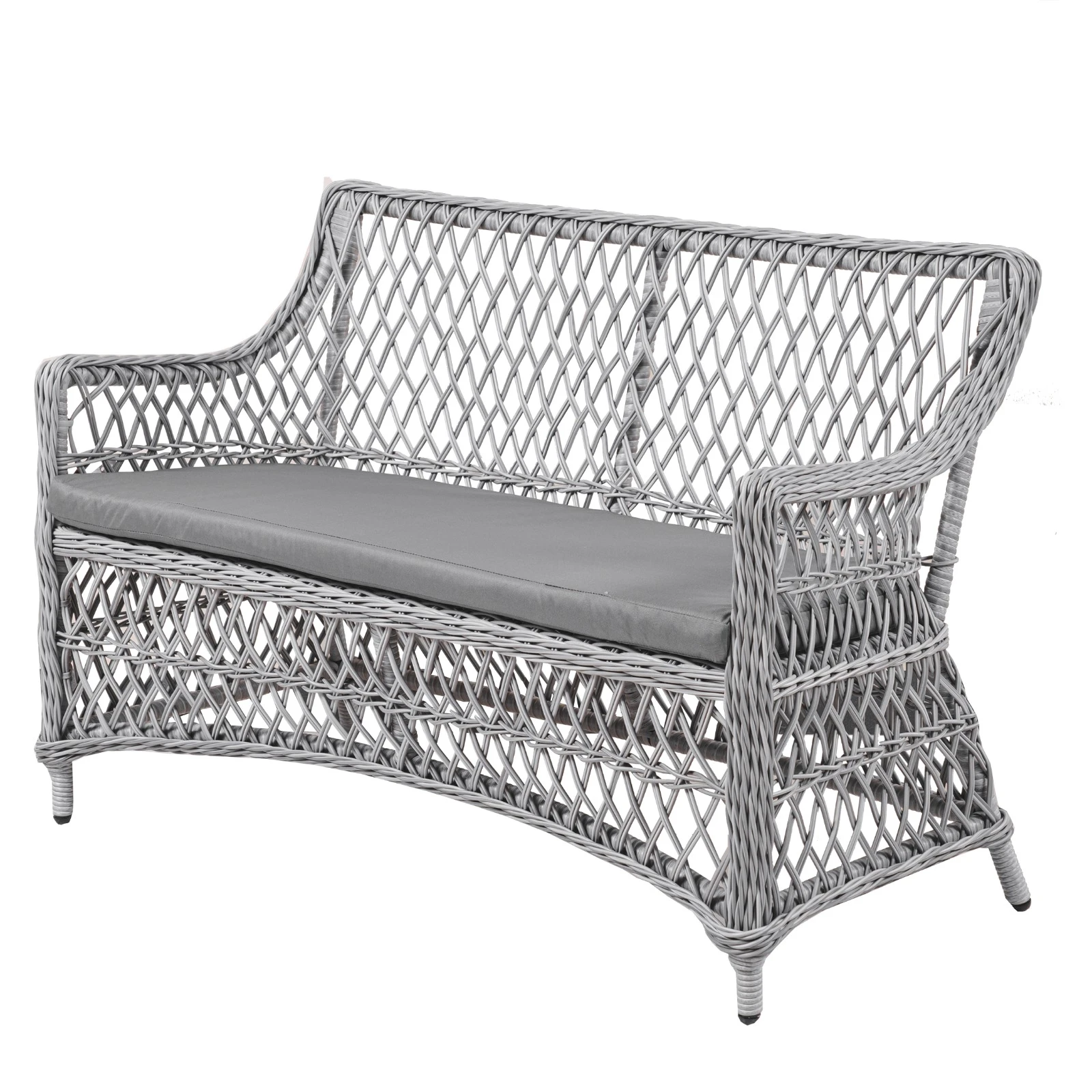 Софа изготовлено вручную в полукруглом/круглом жгуте , идеально сочетается как с плетёным столами, так и со столами из керамогранита или HPL, представленные в нашем шоуруме и на складе фабрики.