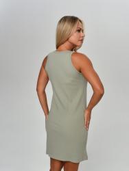 Сорочка прямая полуприлегающего силуэта без рукавов. Круглая горловина и проймы обработаны бейкой из основного полотна.
