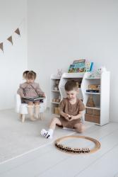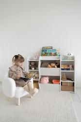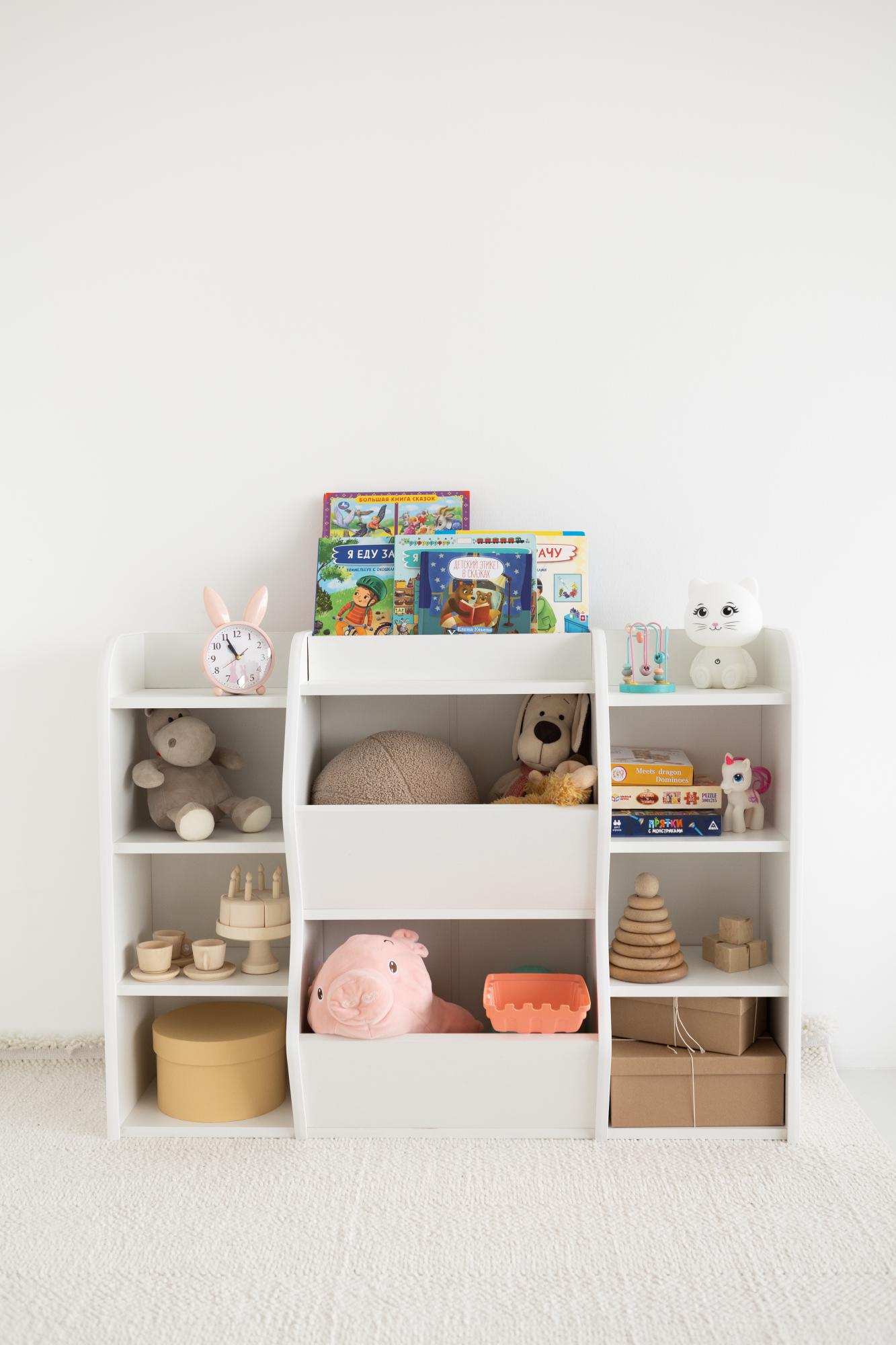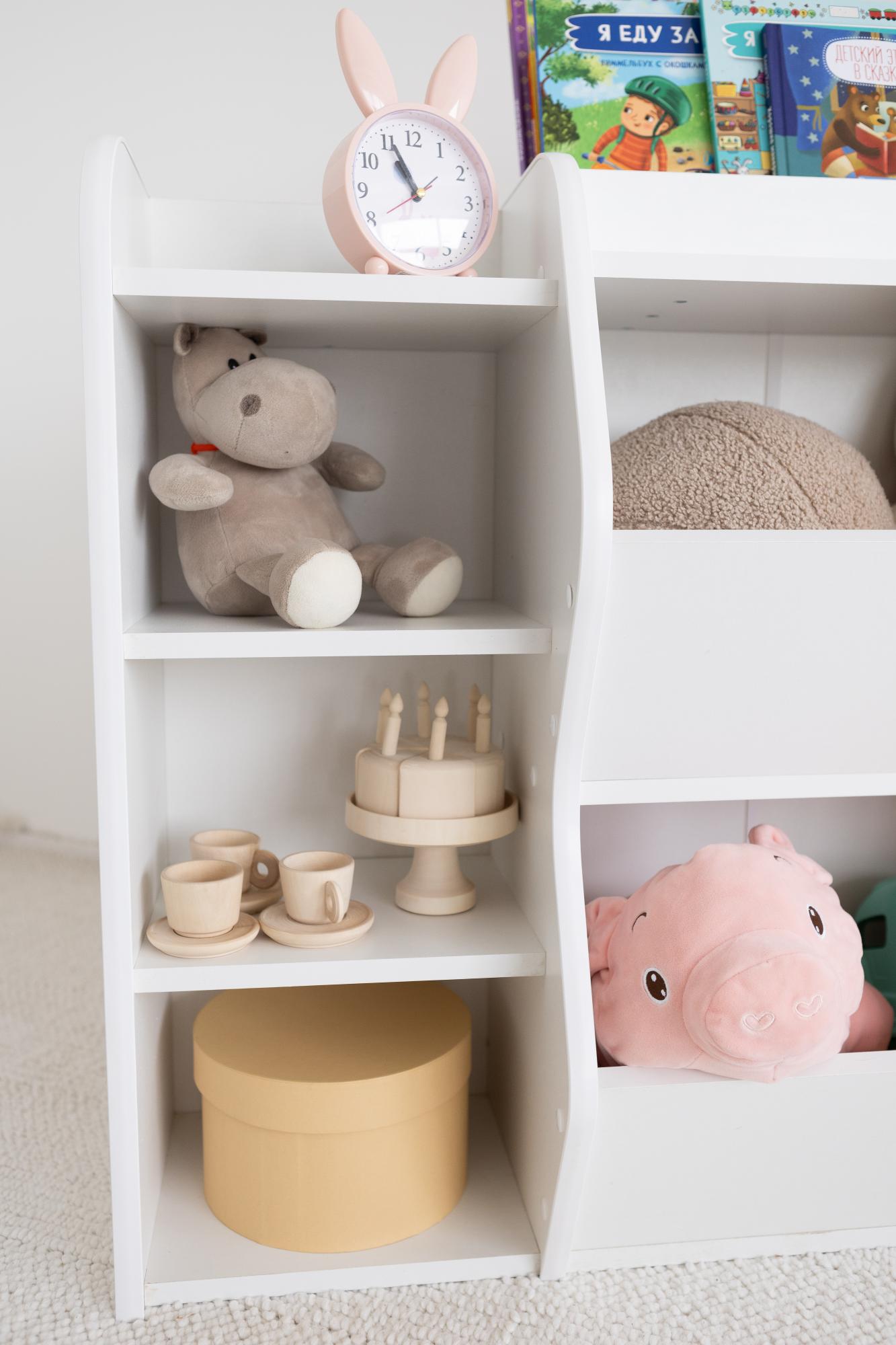Детский стеллаж для книг игрушек идеальное решение для детской комнаты идеи монтессори. Благодаря своей компактности он не займет много места, но при этом обеспитосторноеранение игрушек, книг и других вещей. Стеллаж из дерева создаст уют в детской комнате, а его декоративные элементы подчеркнут стиль интерьера. Изделие выполнено из безопасного дерева, что делает его идеальным выбором для детской комнаты. Открытые полки и ящики обеспечат удобный доступ к игрушкам и книгам, а также помогут поддерживать порядок.