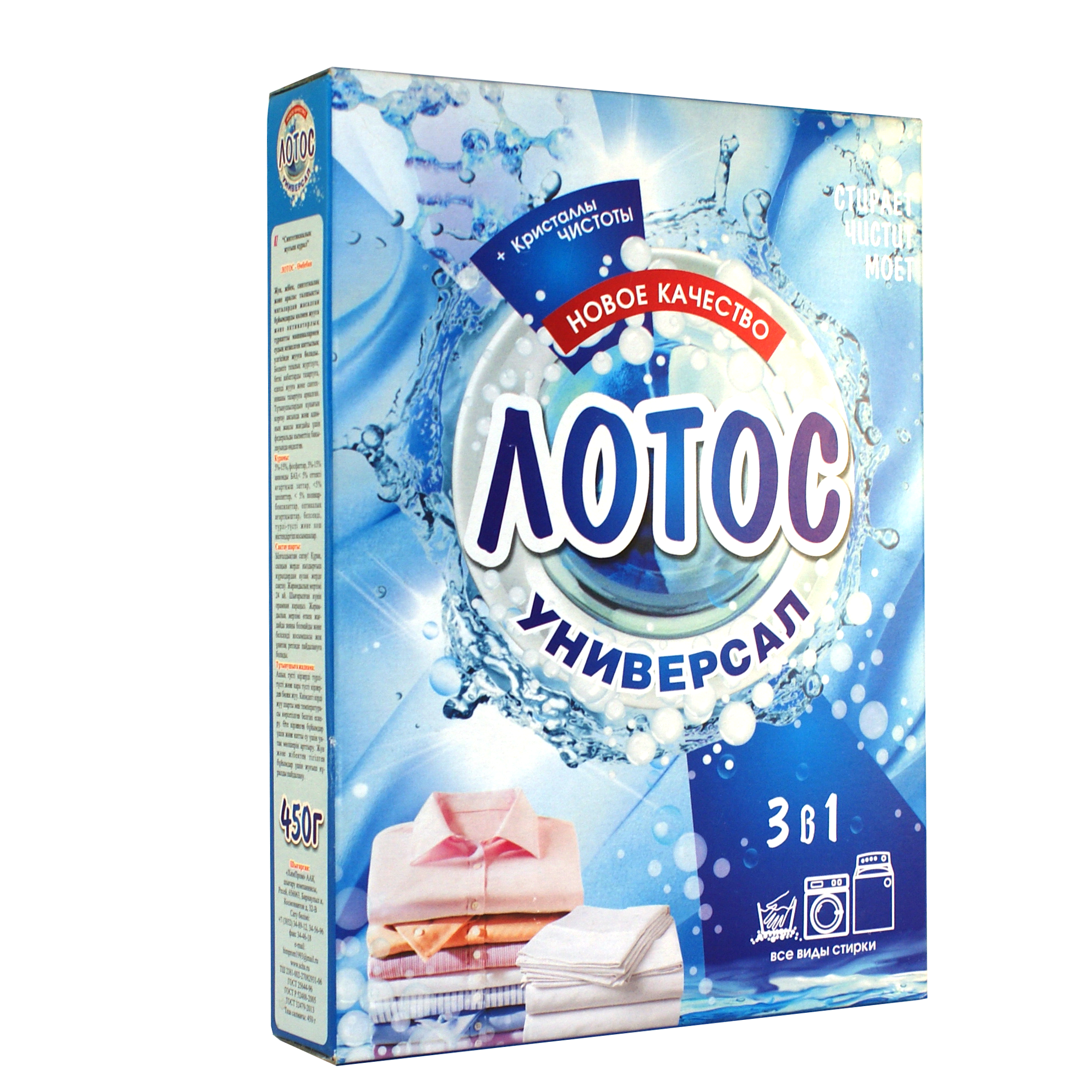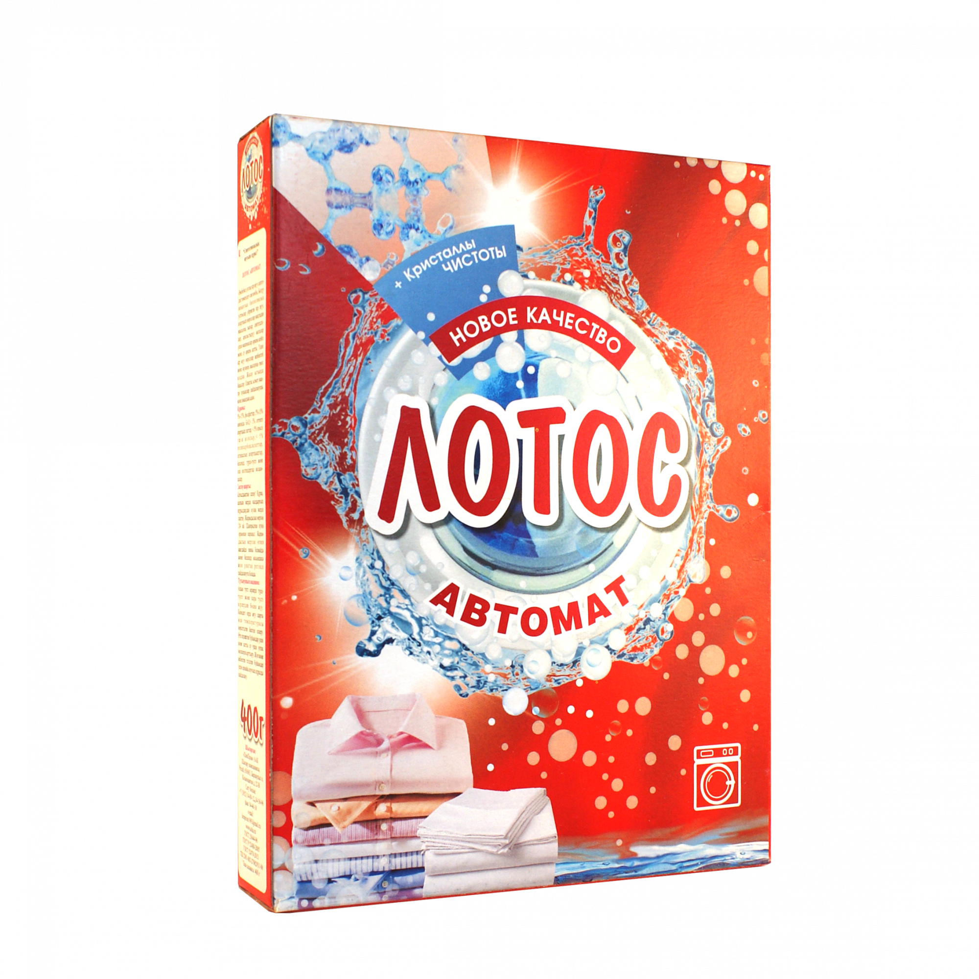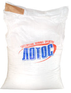 Стиральный порошок «ЛОТОС» — это мелкозернистый белый порошок, который является синтетическим моющим средством и очень легко растворяется в воде. В его составе допускаются различные добавки, улучшающие его качества, ароматизаторы (лимон, морской бриз, луговые цветы и т.д.), а также минимальное количество фосфатов. Порошок обладает моющими и отбеливающими свойствами.