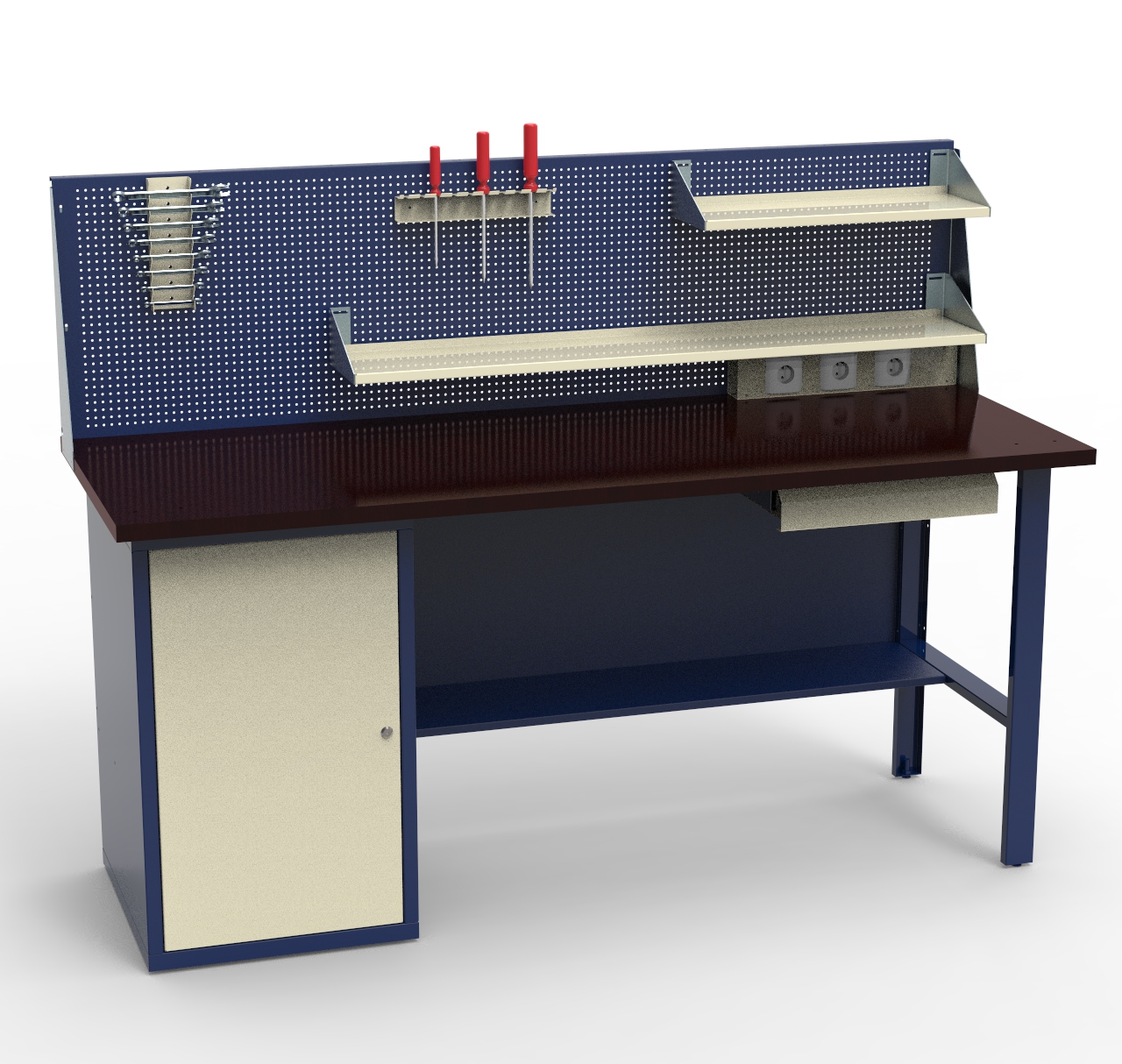 Верстаки серии СВФ оборудованы прочными столешницами, предназначенными для эксплуатации в условиях поаышенноц динамической и статической нагрузок. Купить верстак с одной тумбой и дополнительными элементами обвеса предлагает наш интернет-магазин. Многофункциональная и эргономичная модель СВФ-1Т.01.00.14_сб1 востребована в малом и среднем бизнесе. Специализированную мебель из металла охотно заказывают для сервисных центров и учебных заведений профессионально-технического профиля.