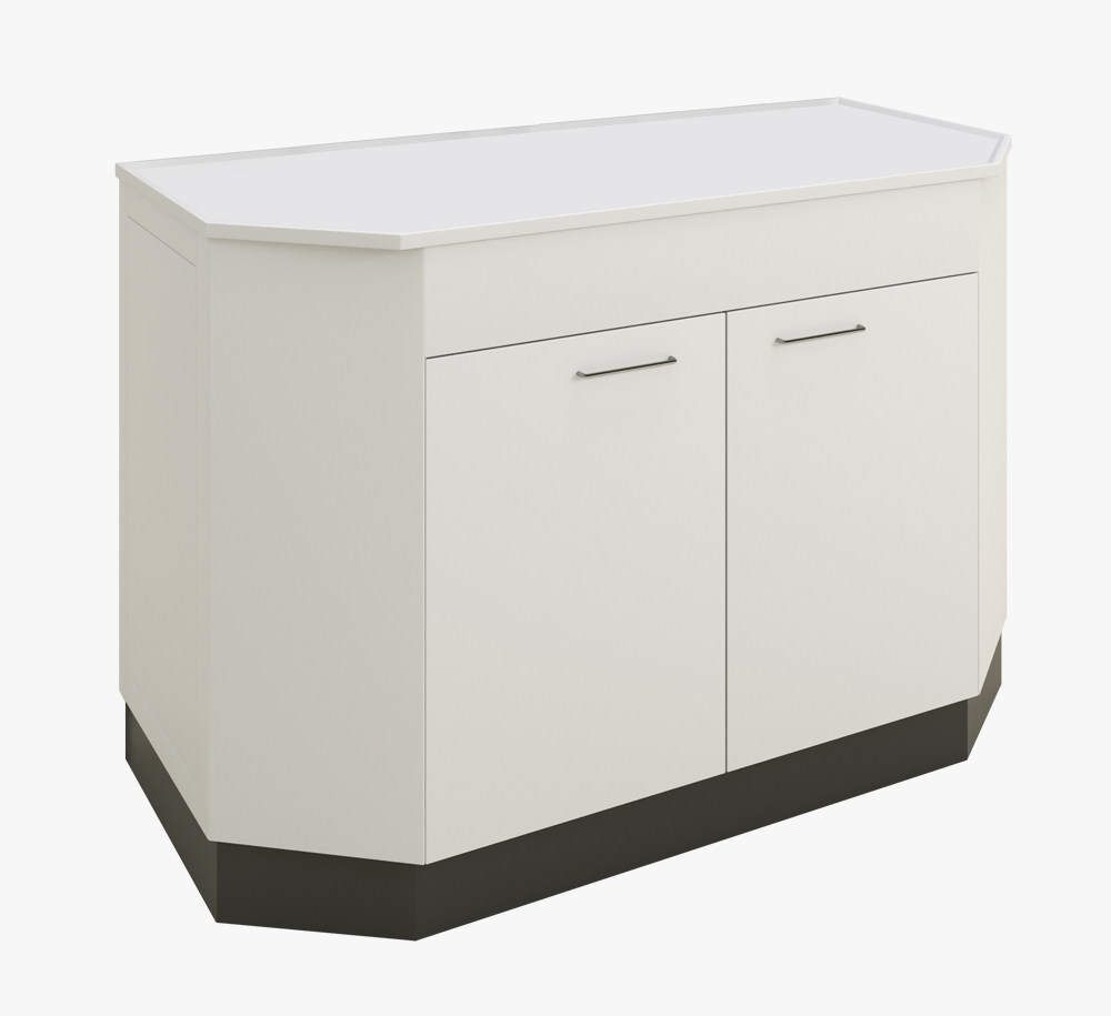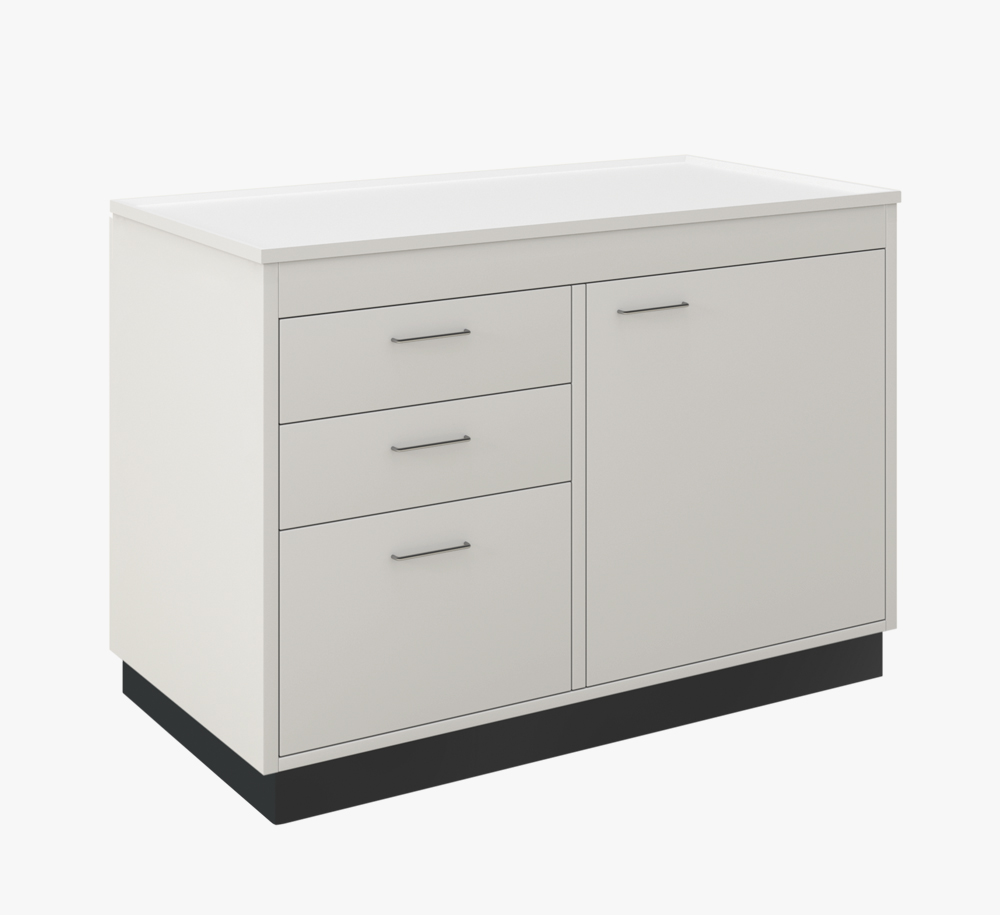 Это базовый и универсальный элемент любой лаборатории, который совмещает в себе рабочее пространство и места для хранения. Базовый вариант выполнен с дверцами.