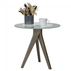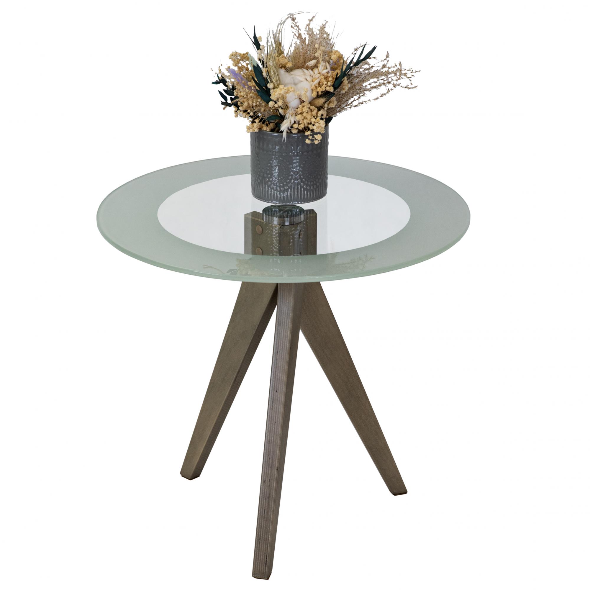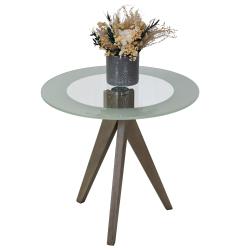 Журнальный столик Рилле 441 – это изящный и компактный предмет мебели, подходящий для любого интерьера от классики до лофта. Рилле 441 прекрасно справляется с ролью как журнального, так и прикроватного или придиванного столика. Опоры, выполненные из шпона берёзы (толщиной 24 мм), обеспечивают устойчивость, надёжность и долгую службу, а покрытие эмалью и тиснение с имитацией рисунка дерева придают столику естественную красоту. Обрамление круглой столешницы диаметром 500мм из стекла (8мм) пескоструйным рисунком шириной 80мм и минималистичный геометрический узор, который создают опоры, формой напоминающие бумеранг, подчеркнут уникальность любого интерьера.