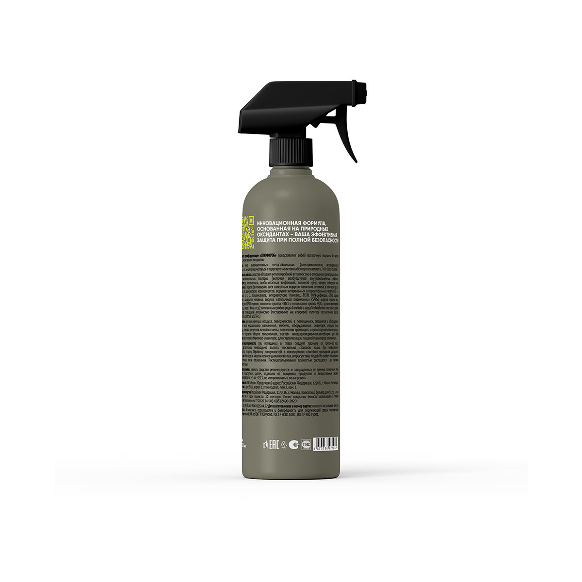 Высокоэффективное и экологичное дезинфицирующее средство для личной гигиены и бытового применения. Обладает полностью натуральным составом без спирта, химикатов, токсинов, аллергенов и канцерогенов. Подходит для обработки всех типов кожи рук (в том числе особо чувствительной), предметов, любых поверхностей, воздуха, а также продуктов питания (овощей, фруктов, рыбы, мяса, яиц). Обеззараживает, нейтрализует запахи, уничтожает грибы, биоплёнки и плесень.