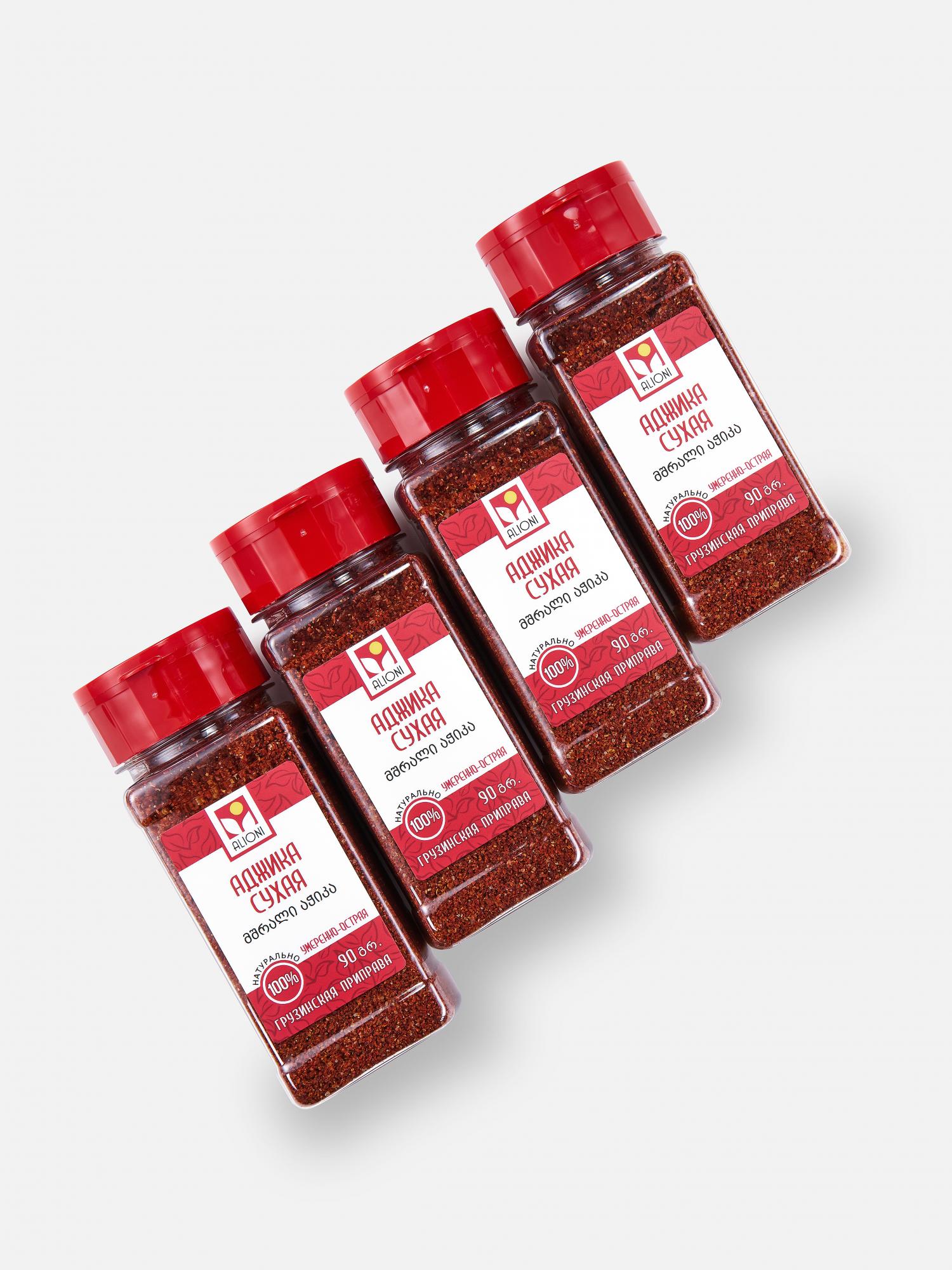 Состав: соль поваренная пищевая молотая (сорт высший, помол №1), вода, чеснок сушеный гранулированный, перец красный молотый чили, перец красный сладкий молотый паприка, кориандр молотый, уцхо сунели молотый, подсолнечное масло.
