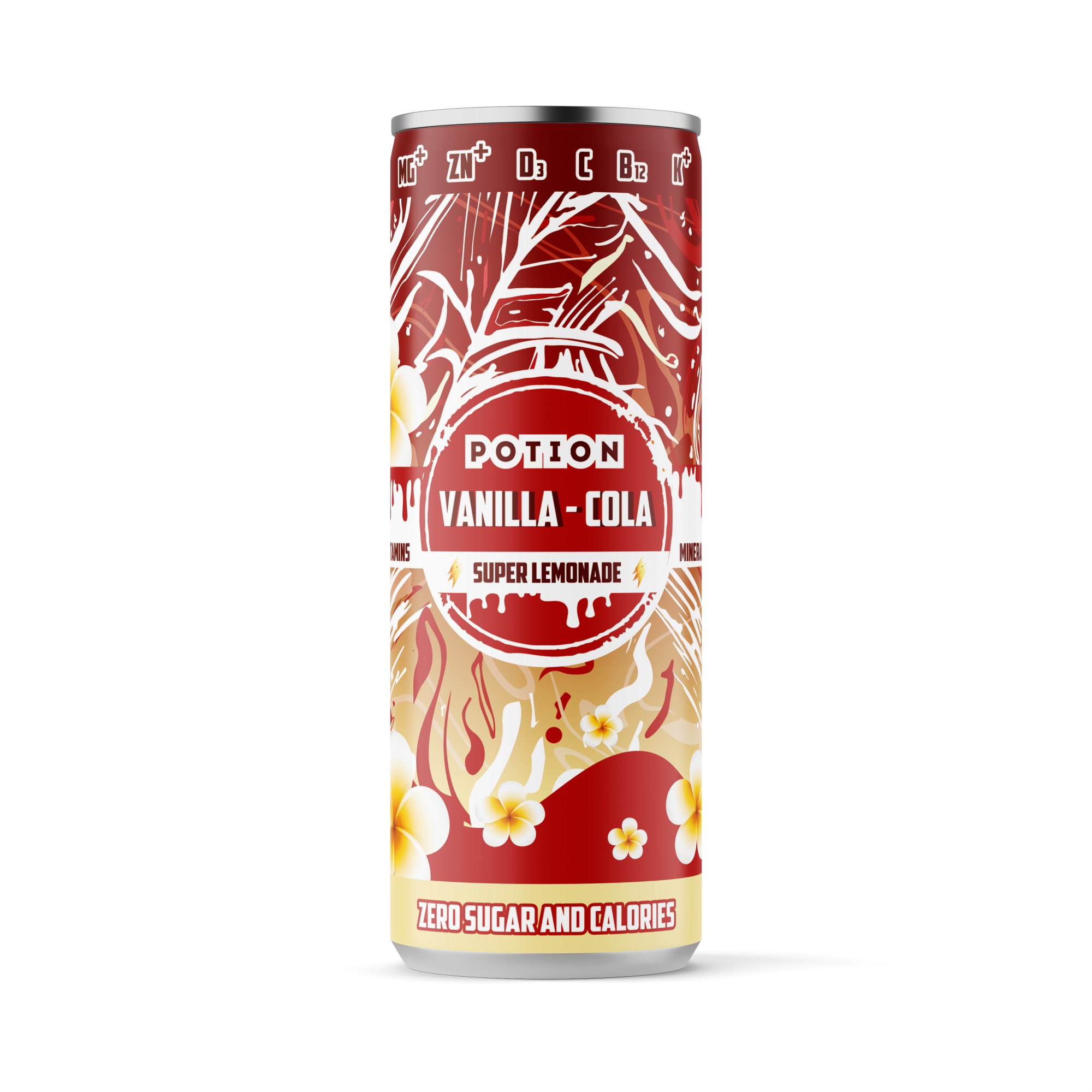 Откройте для себя Potion Super Lemonade — революционный функциональный напиток, который сочетает в себе вкус ванили и колы!