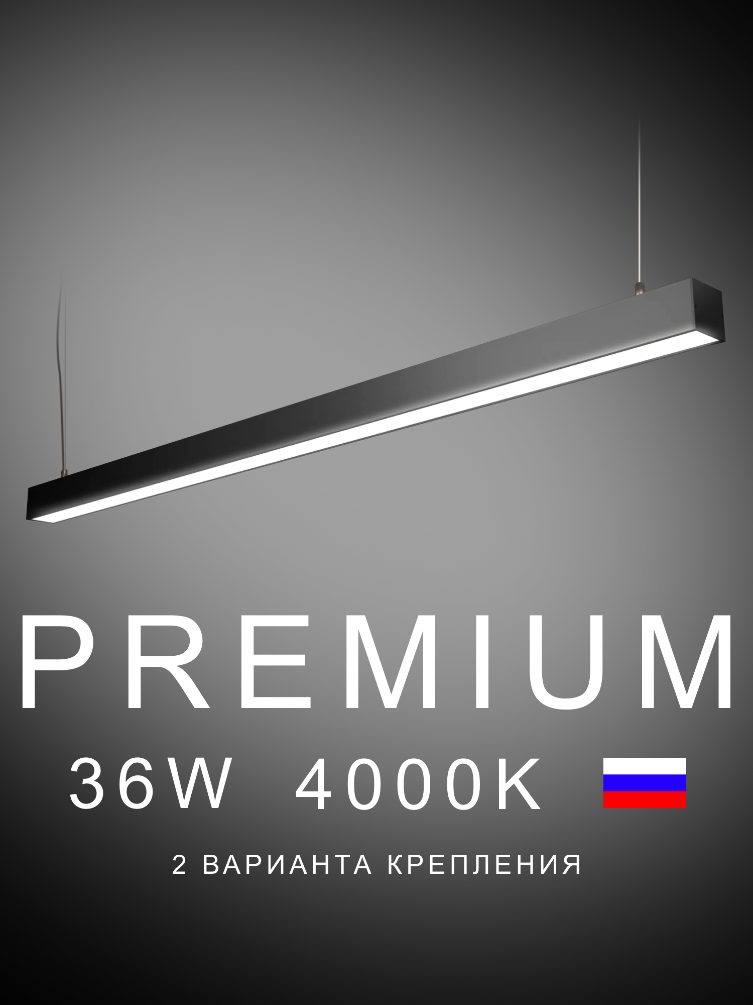 Ну очень мощный подвесной линейный светильник, позволяющий ярко осветить достаточно большое пространство.