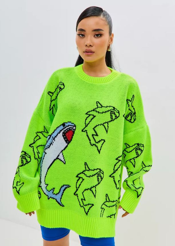 Свитер с акулой идеально подойдёт к любому вашему образу благодаря универсальной цветовой палитре.