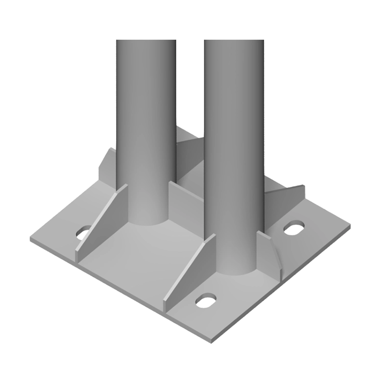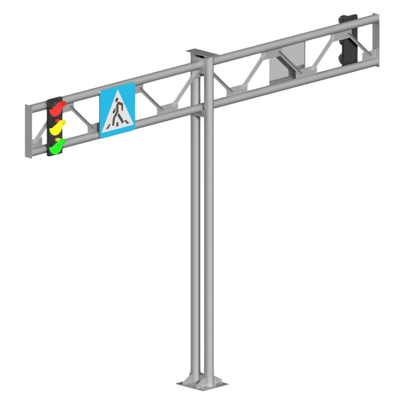 Т-образные опоры РМТ представляют собой металлоконструкции для размещения дорожных знаков и информационных указателей над проезжей частью. Конструкция состоит из вертикальной стойки и двустороннего горизонтального ригеля, изготовленных из стальных труб диаметром от 89 до 159 мм. Высота опор составляет от 5,8 до 6,2 метров с шириной пролета до 12 метров в каждую сторону. Конструкция рассчитывается на ветровые нагрузки до 1600 Па с учетом одновременной установки знаков на обеих сторонах ригеля. Опоры обеспечивают эффективное размещение информационных элементов над разделительными полосами и на транспортных развязках.