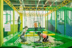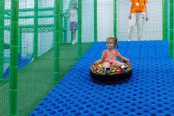 Имитация полета известного героя Тарзана. Конструкция состоит из мягких модулей: стартовой и финишной. Между платформами натянута канатная дорога, по которой осуществляется спуск на блок-ролике. Конструкция безопасна и привлекательна для детей.