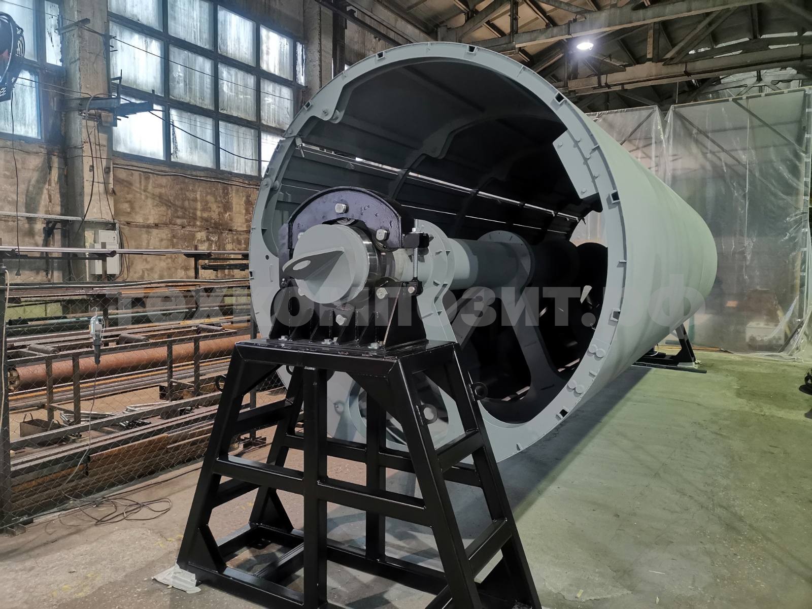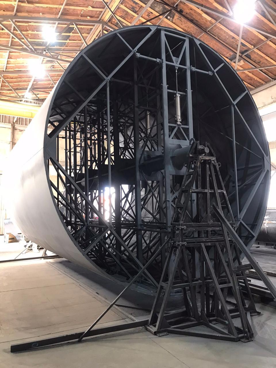 Наша линия предназначена для намотки стеклопластиковых композитных емкостей и труб с внутренним диаметром от 600 мм до 5300 мм. Процесс осуществляется путем подачи пропитанных полиэфирной смолой нитей стеклоровинга на вращающуюся оправку. Вы сможете создавать изделия с необходимой толщиной стенки и различными углами армирования (кольцевая, перекрестная).