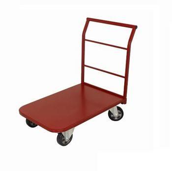 Тележка изготовлена из профильной трубы 25х25х1,5 мм, настил - металлический лист 1,2 мм. Ручка съемная, основание ручки усилено для предотвращения изломов. Комплектуется четырьмя колёсами диаметром от 125 до 250 мм., обычно 2 поворотных + 2 не поворотных колеса. Крепления колес универсальные и подходят для большинства китайских и европейских колес. Максимальная грузоподъёмность конструкции до 500 кг (может изменяться в зависимости от колёс)