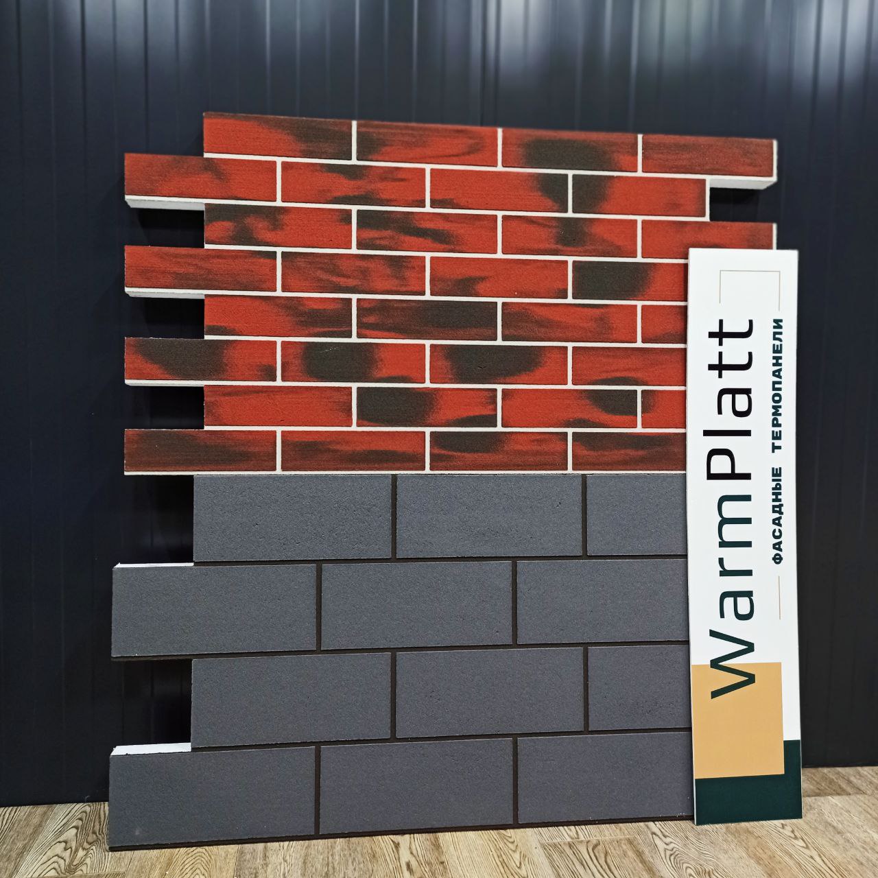 Армирующим слоем термопанели служит специальный полимерный состав из мраморного песка, который монолитно залит на пенополистирол матричным способом. Расшивка и «кирпичики» являются единым неделимым армирующим слоем. Его невозможно отделить от утеплителя никаким образом.