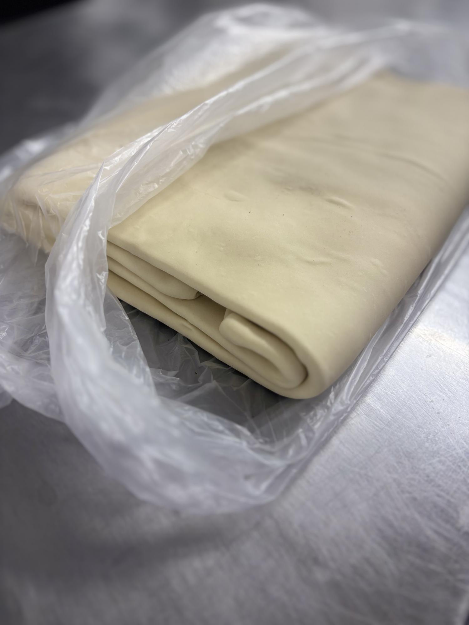 Тесто предназначено для промышленного производства, выпускается блоками весом 5кг, предназначенных для дальнейшей раскатки на оборудовании до нужной толщины.