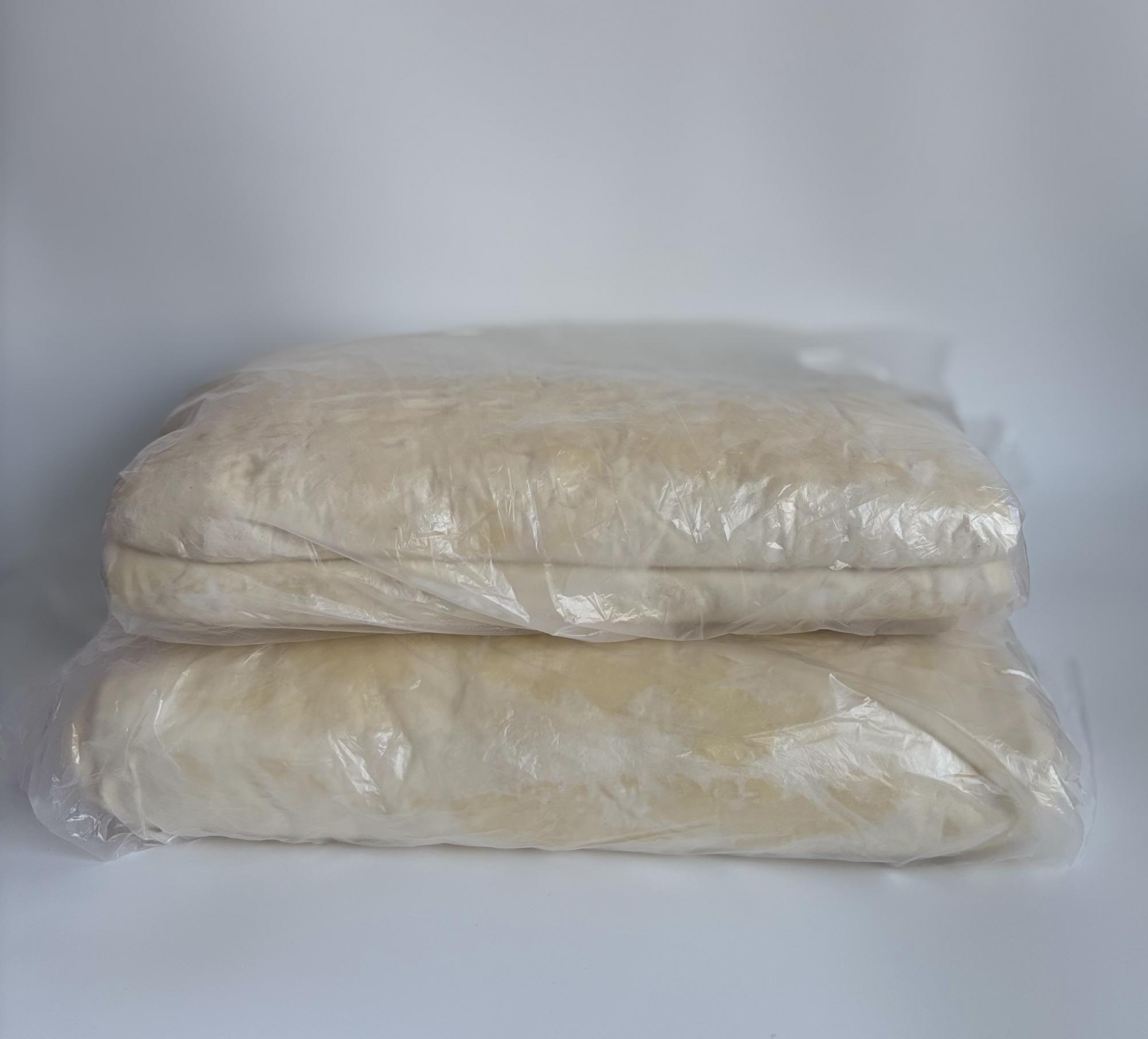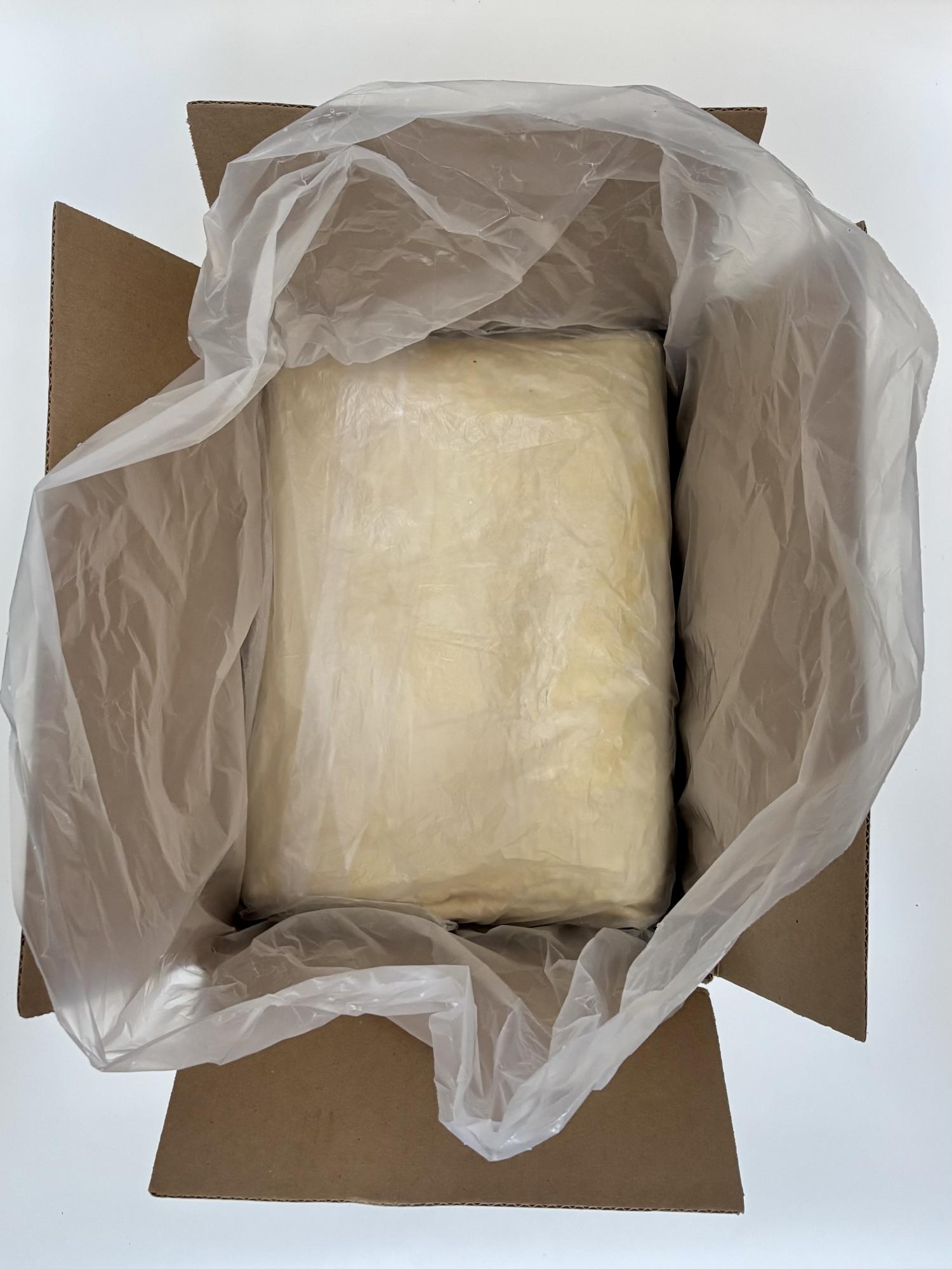 Упаковано в гофрокороб по 10 кг, 2 блока по 5кг, каждый блок в отдельном пакете. Срок хранения замороженного полуфабриката-теста слоеного дрожжевого при температуре минус 18С-120 суток.
