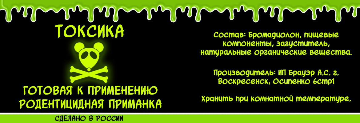 Токсика - готовое к применению средство от грызунов. Родентицид. Действующее вещество бромадиолон.