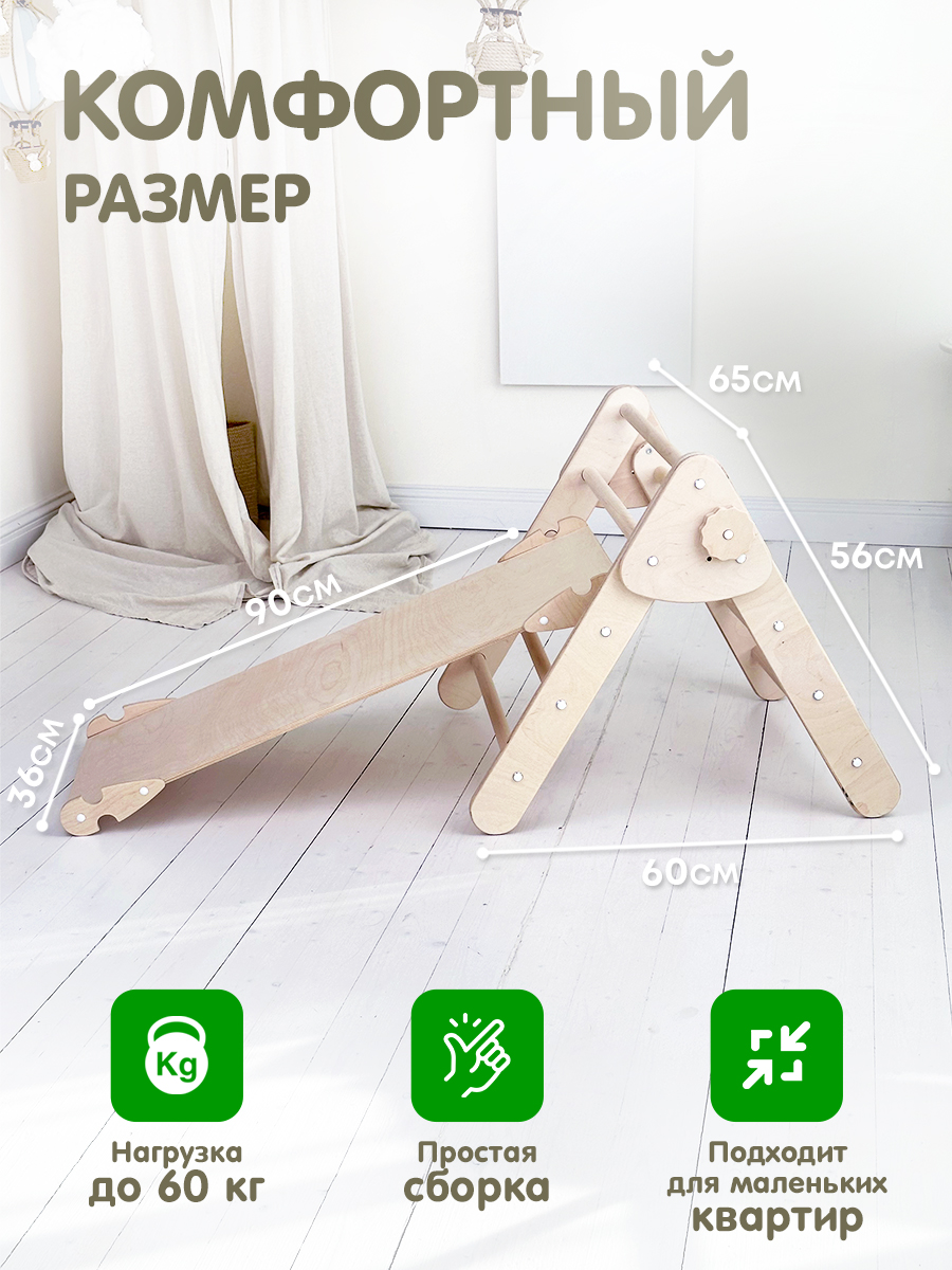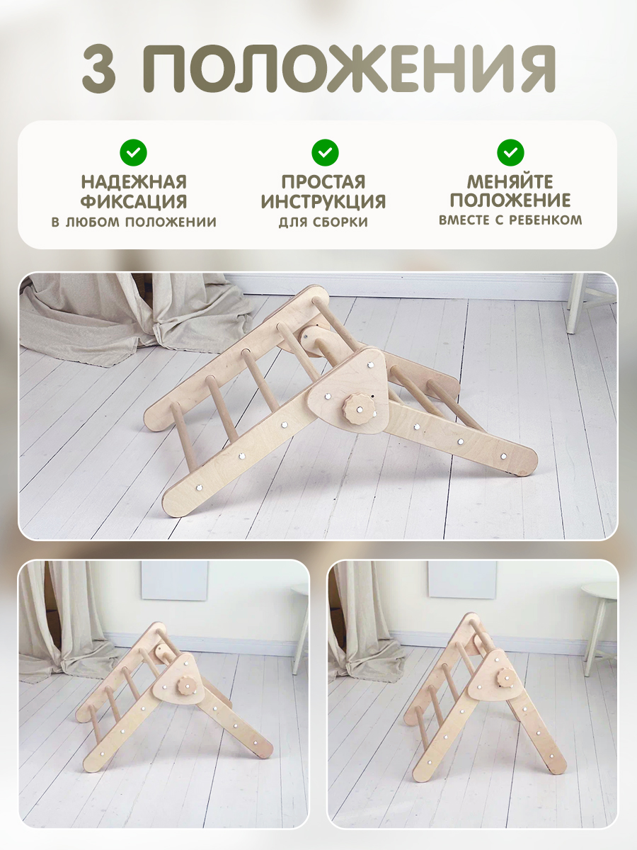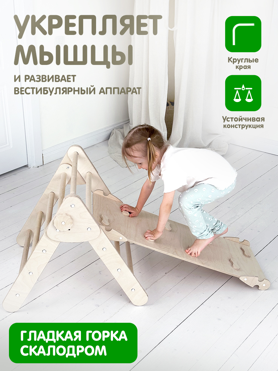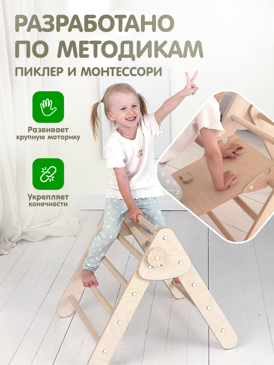 Треугольник ПИКЛЕРА - уникальная игровая площадка. Этот деревянный комплекс предоставляет огромное количество возможностей для игр и занятий спортом для ребенка. В домашнем уголке или на улице, на этой монтессори игрушке дети смогут не только активно проводить время, но и развивать свои физические способности.