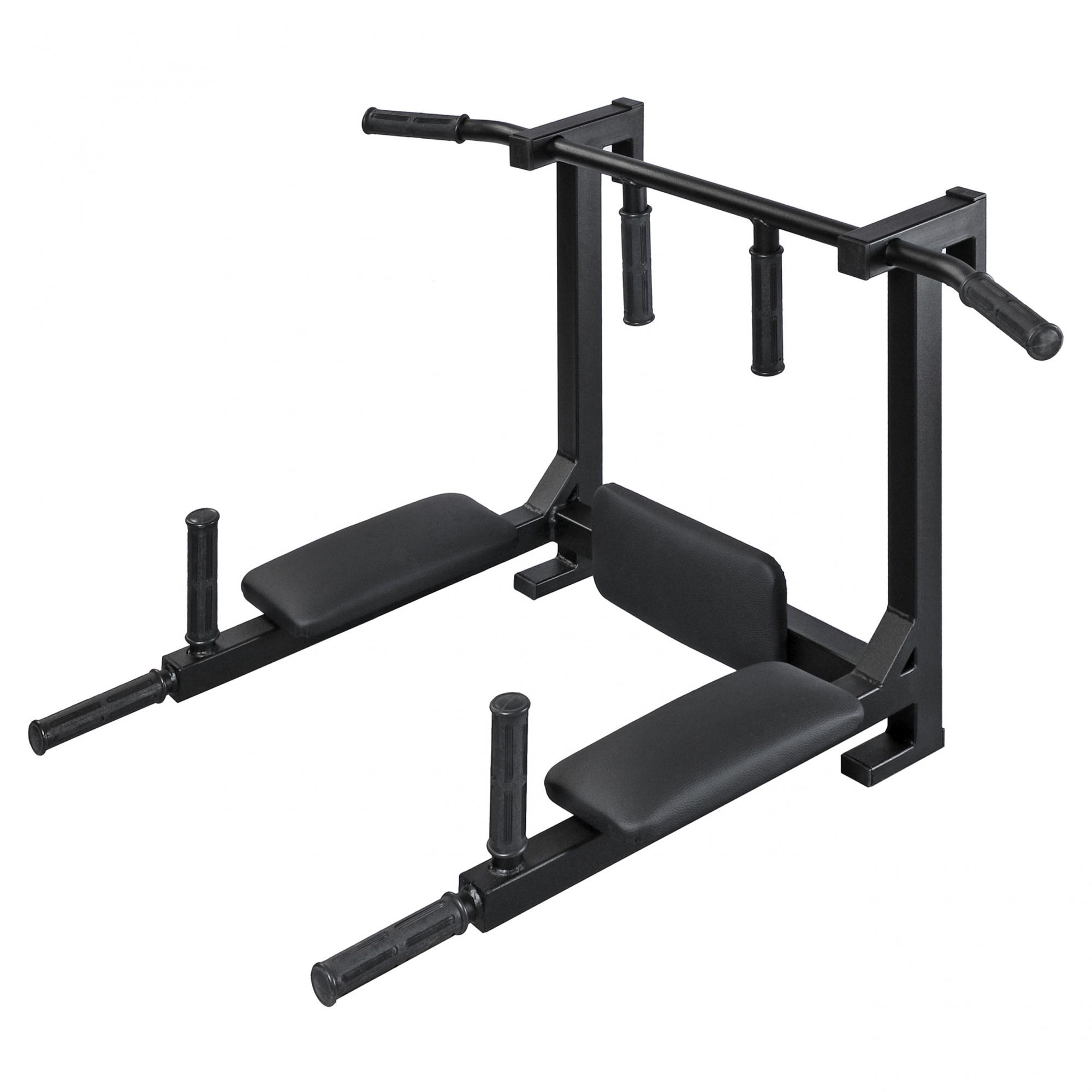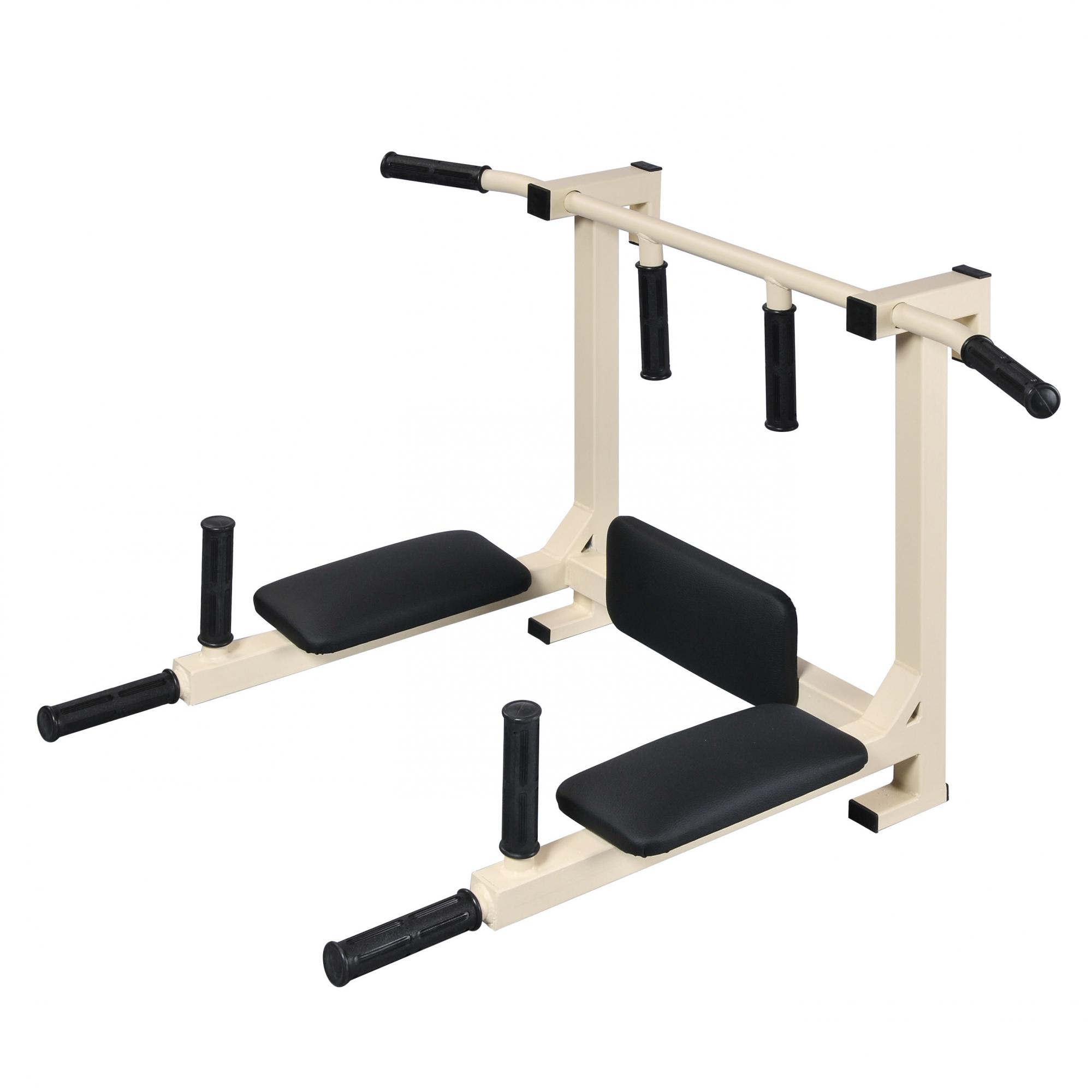 Резиновые ручки предотвращают соскальзывание рук в местах хвата. Подлокотники и спинка мягкие, обтянуты искусственной кожей, закругленные по краям, обеспечивают удобный упор при выполнении упражнений. Конструкция отличается высокой прочностью, производится из толстостенной стальной трубы, покрытой порошковой краской.