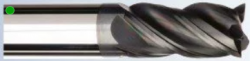 Цельные твердосплавные фрезы серии 201, 4 зубые, с плоским или радиусным торцем, переменным зубом, углом наклона винтовой канавки 38 градусов, предназначенные для высокопроизводительной обработки углеродистых и инструментальных сталей до 48 HRC, нержавеющих, жаропрочных сталей, титана, чугуна.