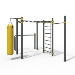 Уличный спортивный комплекс для workout WK-49 устанавливается в общественных пространствах и на частных участках. Диаметр стоек 108 мм. Хомуты выполнены из стали. Покраска с грунтовкой в 3 этапа.