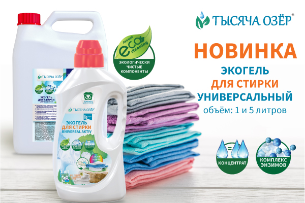 Экогель ТЫСЯЧА ОЗЁР – это бережное средство для стирки различных видов тканей....