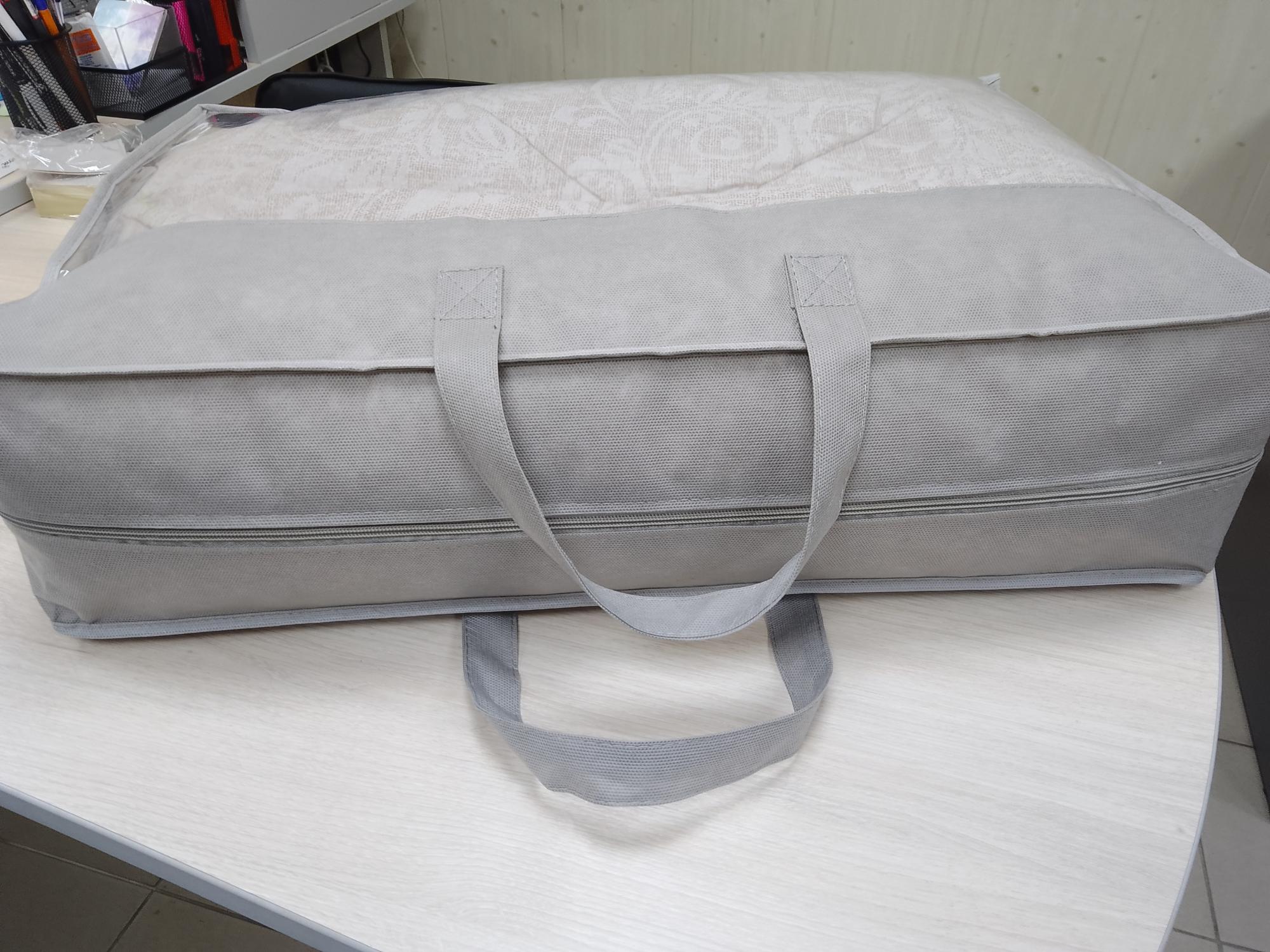 упаковка для одеял, подушек (тип чемодан). Материал спанбонд, пленка ПВХ или ПВД, рулонная молния, две ручки -стропа.