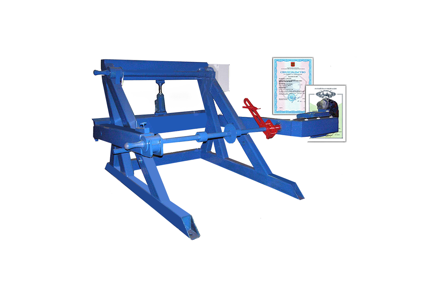 - приемная стойка устройства оснащена гидравлическим подъемником для поднятия и опускания барабанов с кабелем, что позволяет производить отмотку кабеля без привлечения грузоподъемных механизмов;