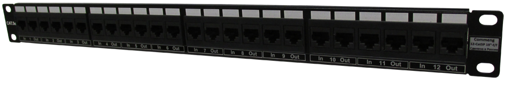 Подключение к панели Commeng 12-Cat5P-19″ f/f производится через 8-контактные разъемы RJ-45 (8P8C). Устанавливается в 19-дюймовые шкафы и стойки, находящиеся в помещениях или климатических шкафах.