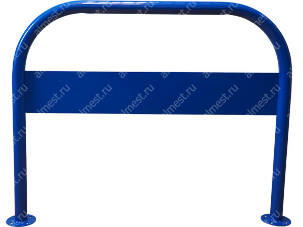 Изделие выполнено из гнутой круглой трубы диаметром 45 мм и покрыто порошковой краской выбранного заказчиком цвета в соответствии с таблицей RAL. Покрытие надежно защищает металл от влаги, снега, ударов и других механических воздействий, обеспечивая долговечность эксплуатации. Установка осуществляется на восьми анкерных болтах диаметром 8 мм и не требует специальной подготовки поверхности: достаточно ровного асфальта, бетона или устойчиво закрепленной брусчатки.