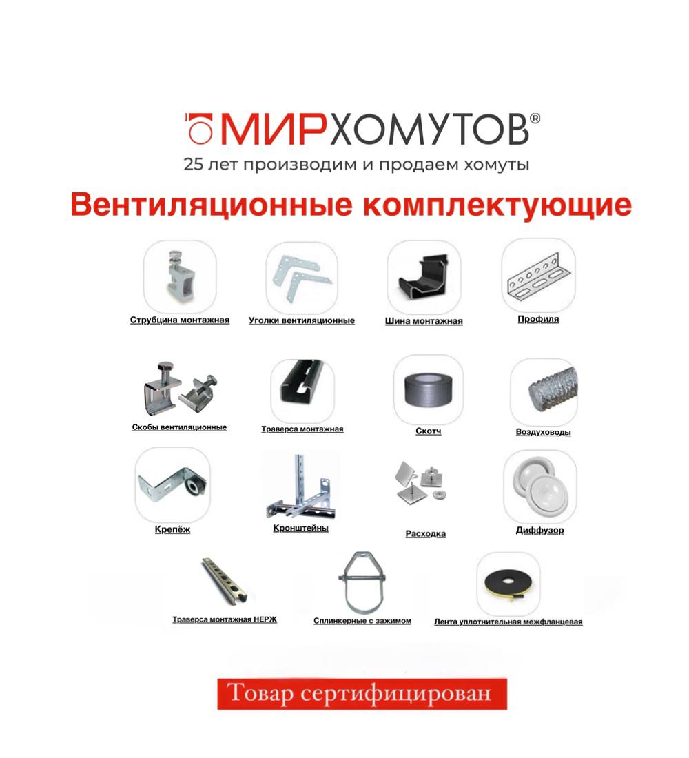 Раздел посвящен быстрорастущей группе вентиляционные комплектующих. Под вентиляционными комплектующими мы понимаем весь ассортимент крепежа, скоб, хомутов, пластин, уголков, болтов, муфт и т.д. применяемых для крепления воздуховодов монтируемых в промышленных, общественных и жилых зданиях.