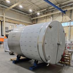 Ёмкость объёмом 10 м3 предназначена для хранения пищевого сырья в жидком виде (масла, воды). Ёмкость изготовлена из нержавеющей стали марки AISI304.