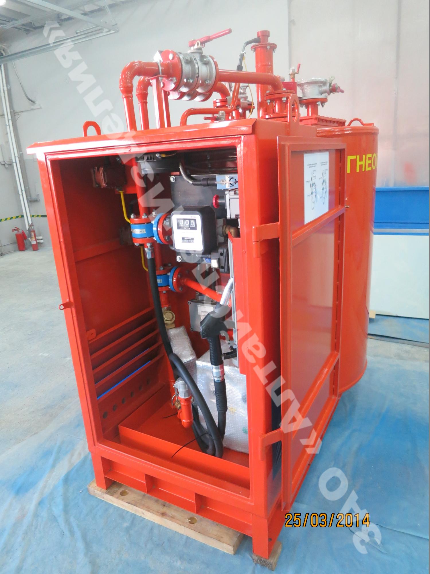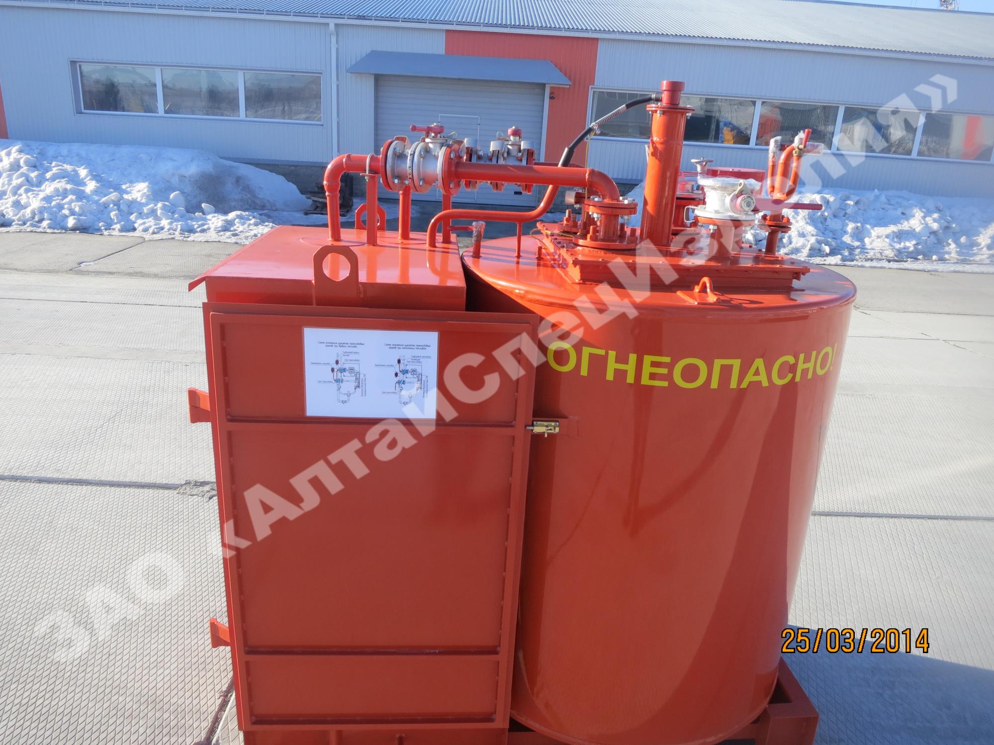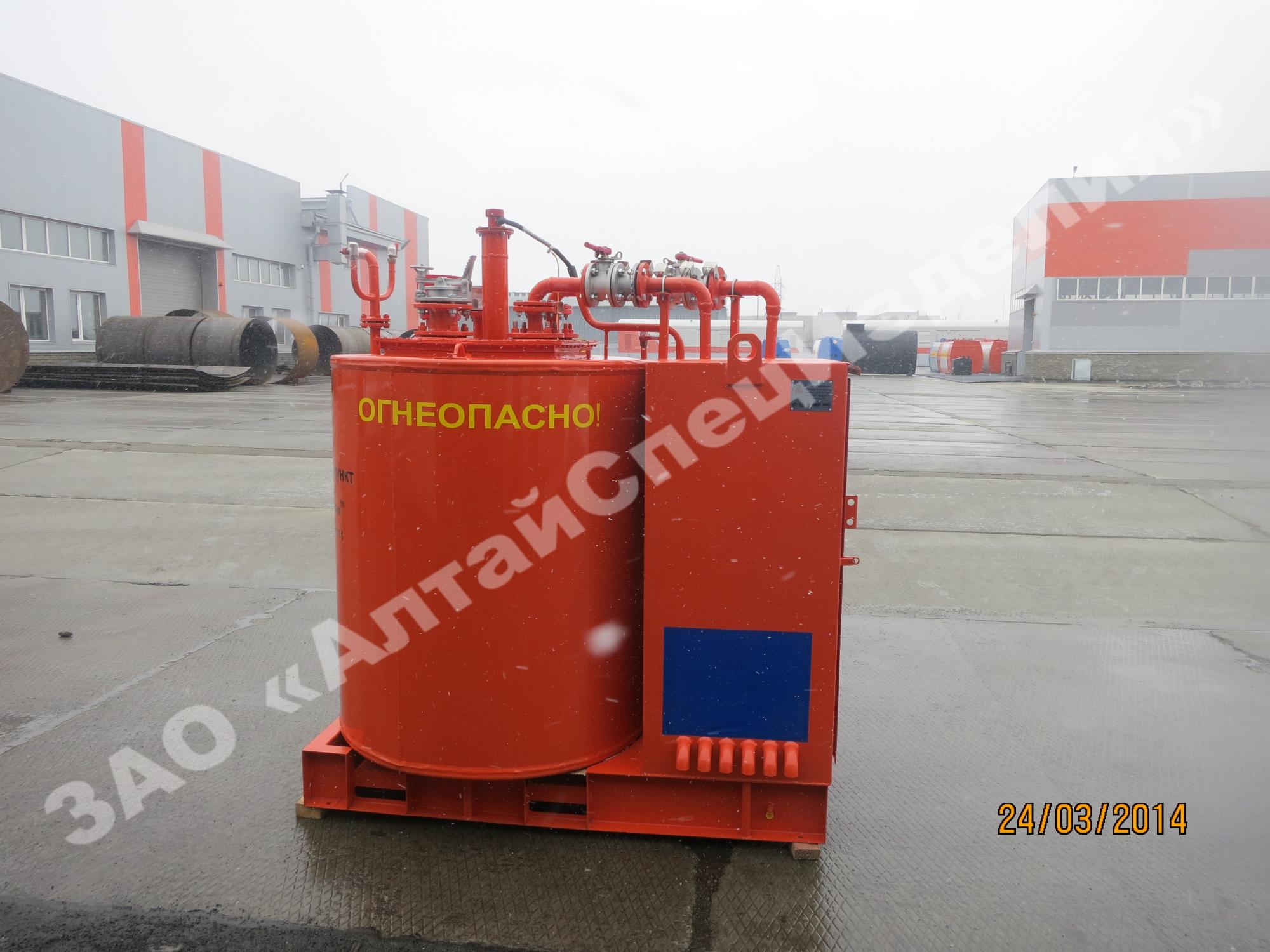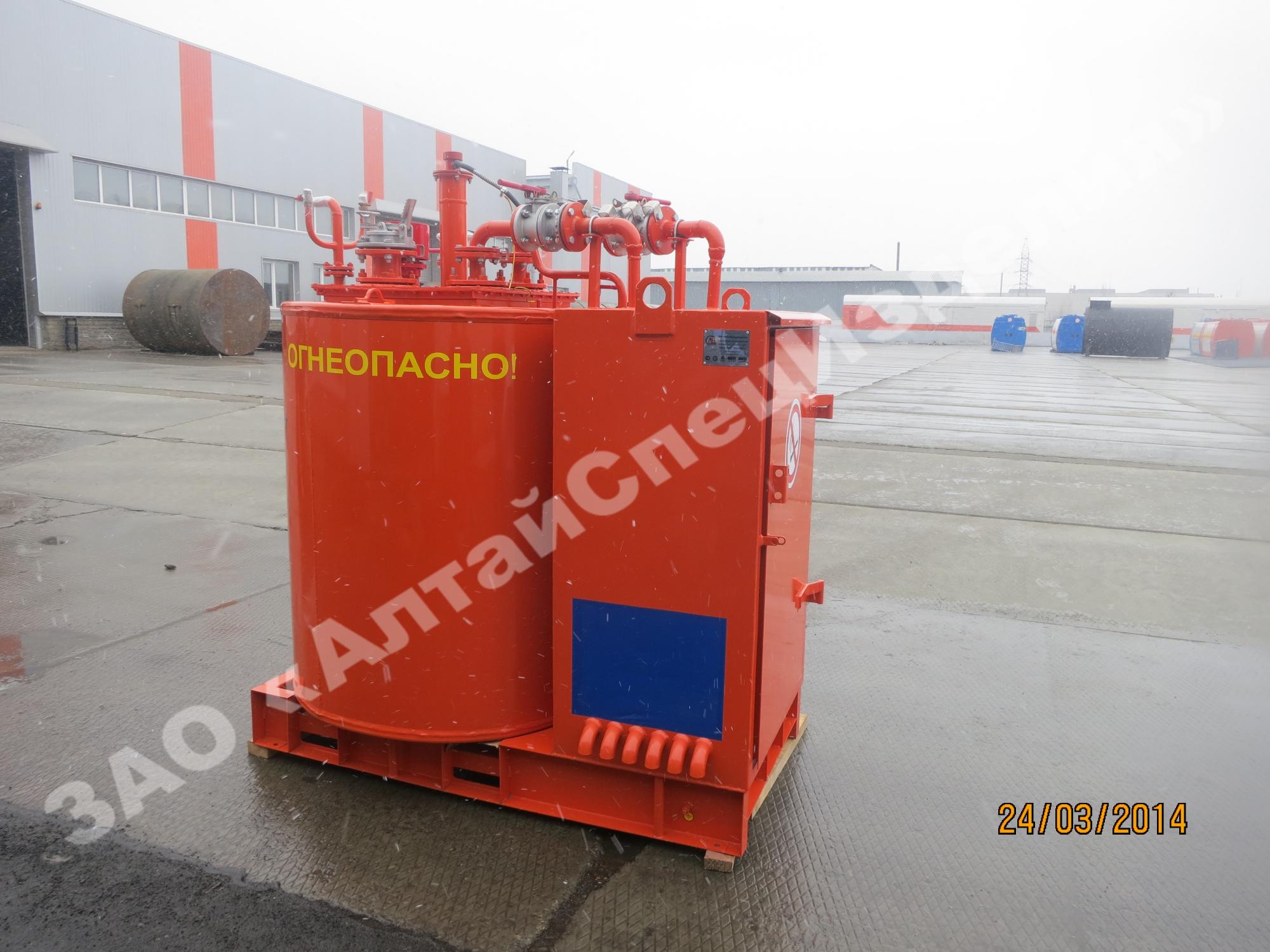 Вертикальные топливозаправочные пункты малой вместимости также называют топливозаправочными модулями. Вертикальная емкость выполняется как в одностенном, так и двустенном исполнении. Толщина каждой стенки составляет – 4 мм (для примера: толщина стали больших передвижных бензовозов – 5 мм). Толщина межстенного пространства модуля составляет – 3 мм и заполняется антифризом.