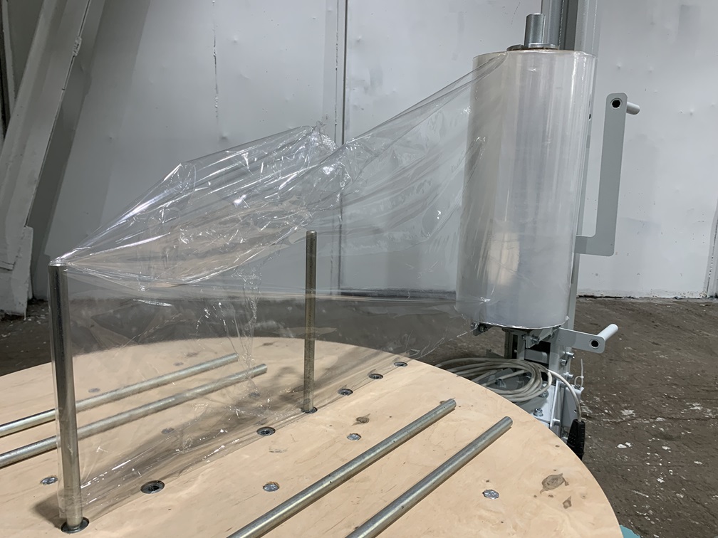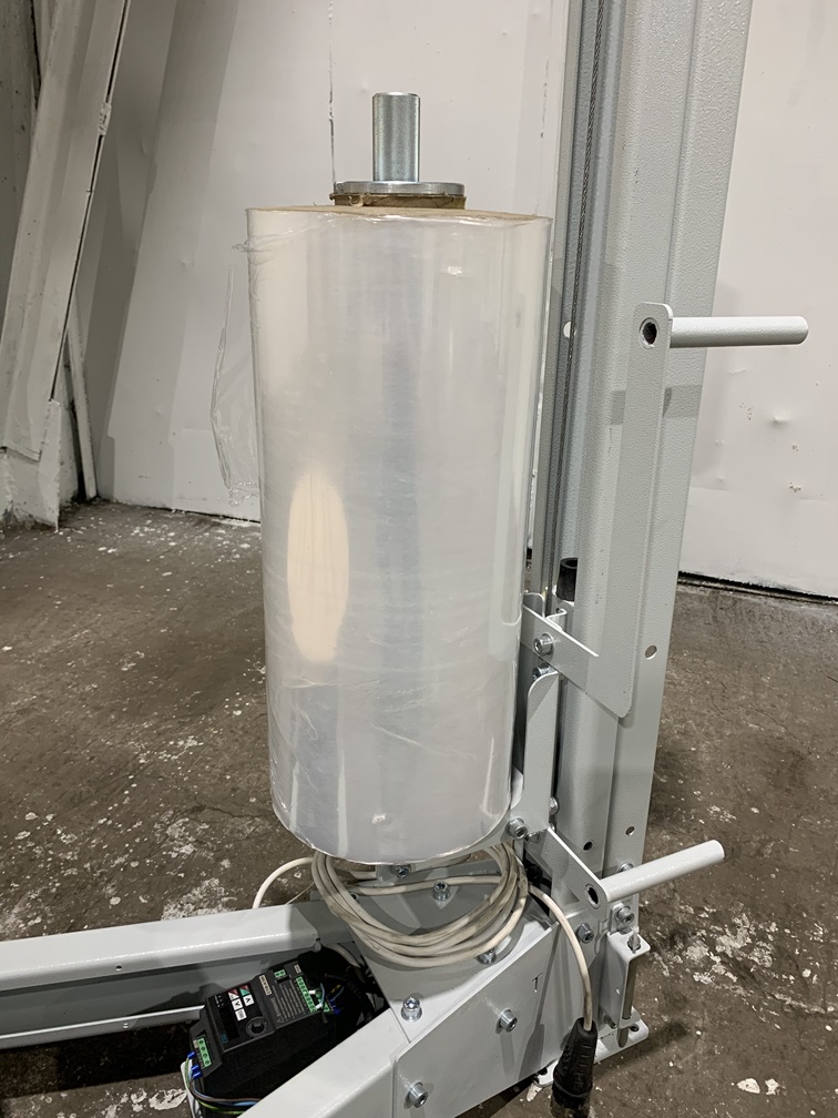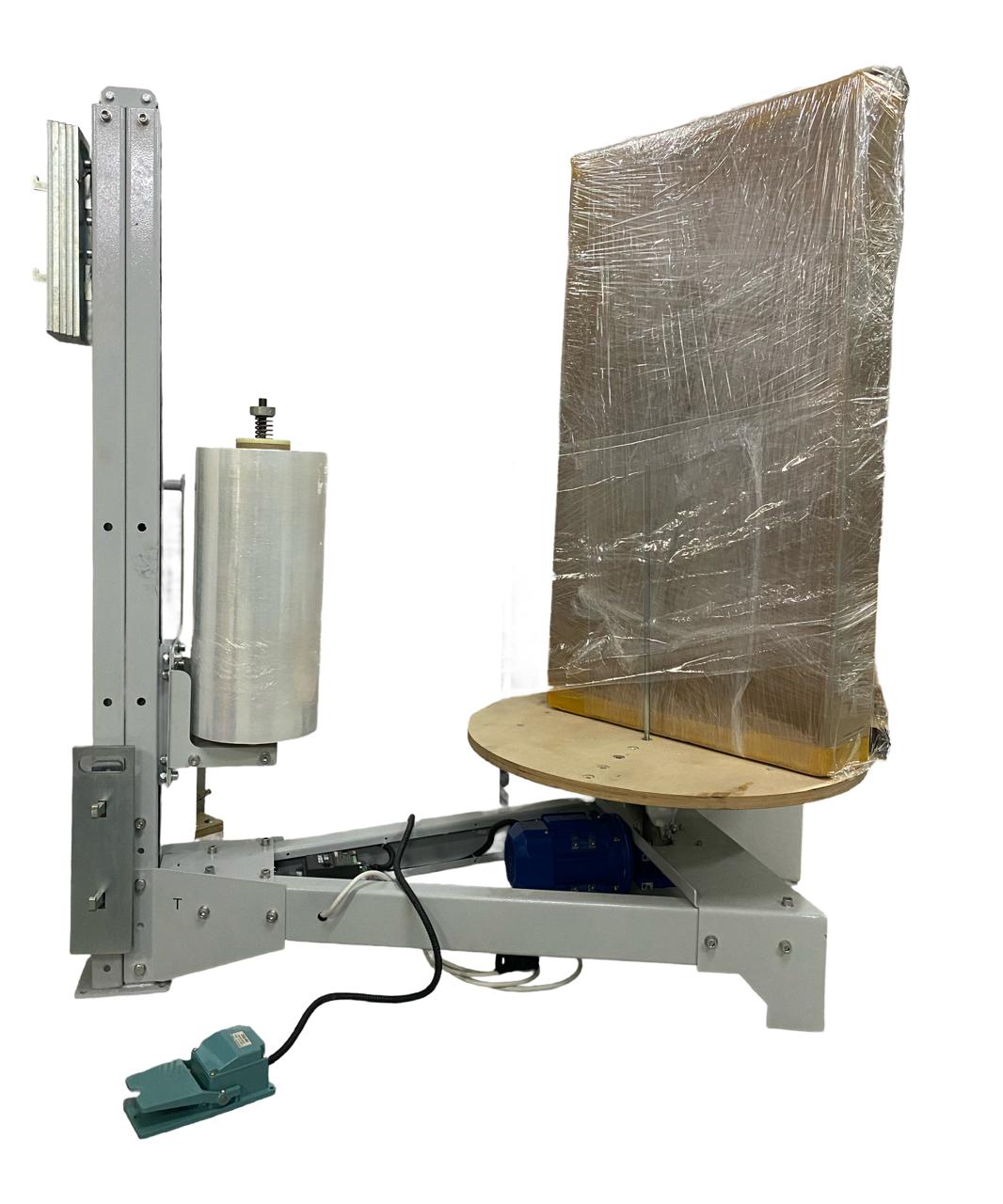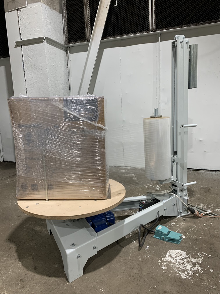 Полуавтоматический стрейч упаковщик с ручной кареткой. Упаковочное оборудование предназначено для обмотки в стрейч-плёнку грузов от 0,5 до 80 кг.