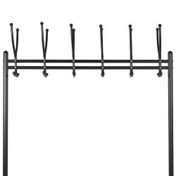Вешалка рассчитана максимально на 17 посетителей: 12 крючков для одежды, столько же для головных уборов