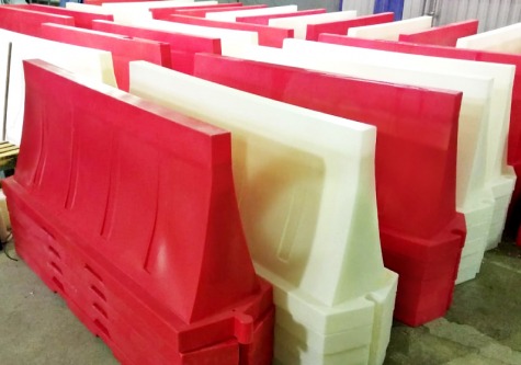 Дорожные барьеры используются для строительных и ремонтных работ, обозначения ДТП, в качестве ограждений на парковках, используются и при проведении спортивных мероприятий. Изделия компактны для хранения и транспортировки, легко очищаются от загрязнений, не имеют швов, высокопрочны. Чтобы увеличить амортизирующую способность, блоки наполняют водой, резиновой крошкой либо другим демпфирующим материалом. Благодаря бесшовной технологии изготовления блоки герметичны, имеют заливное и сливное отверстия. Из-за яркой окраски они хорошо видны на дорогах.Можно использовать при температуре окружающей среды и продукта от -40°С до +60°С.