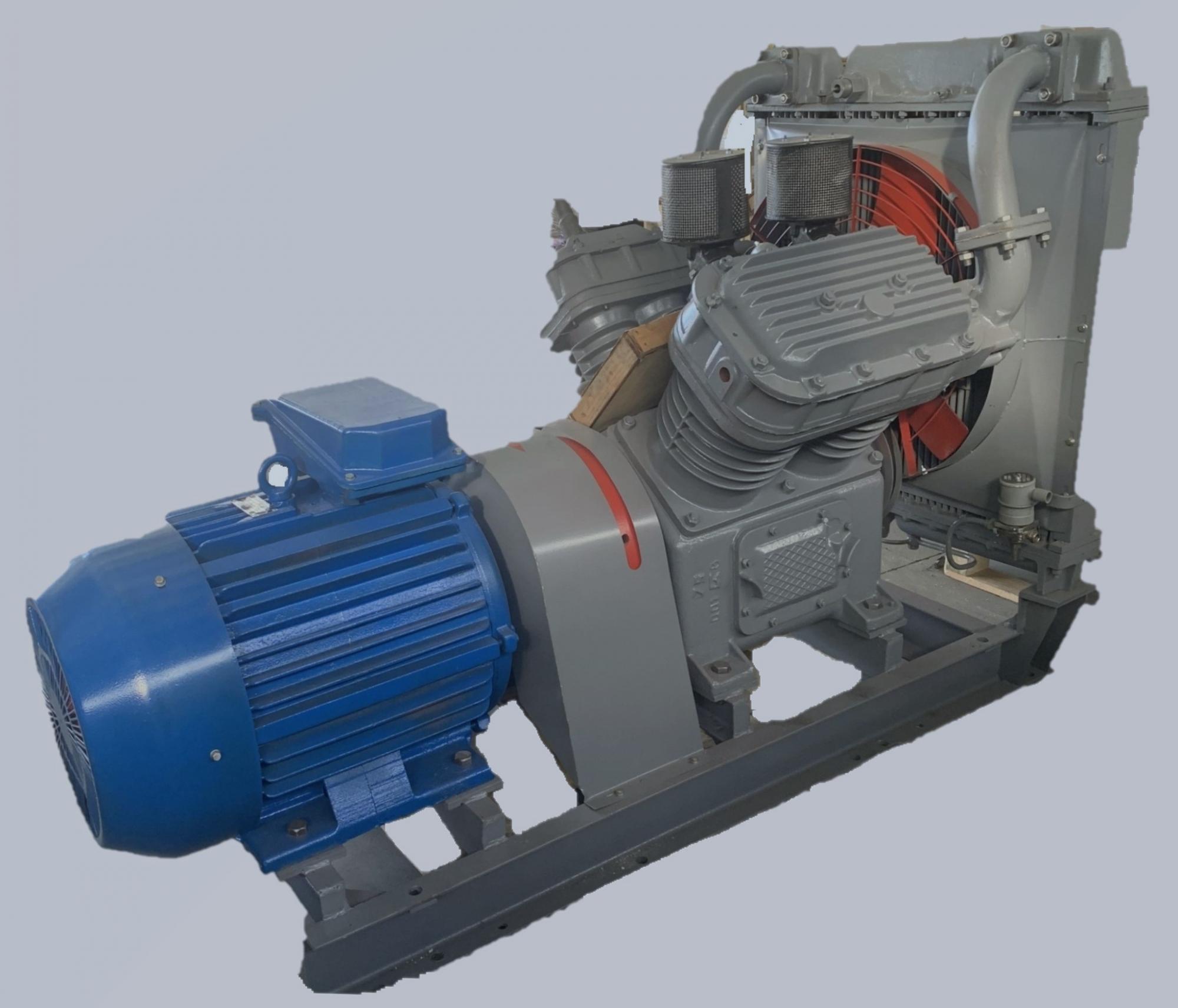 Компрессор 4ВУ1-5/9 - это компрессор общего назначения, предназначенный для обеспечения сжатым воздухом всех типов пневматических инструментов, машин и оборудования. Он подает сжатый воздух с давлением от 0,88 до 0,98 МПа через четыре V-образных цилиндра. Привод агрегата осуществляется ременной передачей через шкивы, установленные непосредственно на раздаточной коробке бура и корпусе компрессора. Компрессор установлен на специальной раме и оснащен устройством для натяжения ремня. Компрессор 4ВУ1-5/9 отличается высокой производительностью, надежностью, непрерывными рабочими циклами и автоматической системой безопасности. Они могут использоваться в самых разных отраслях промышленности, включая бурение и