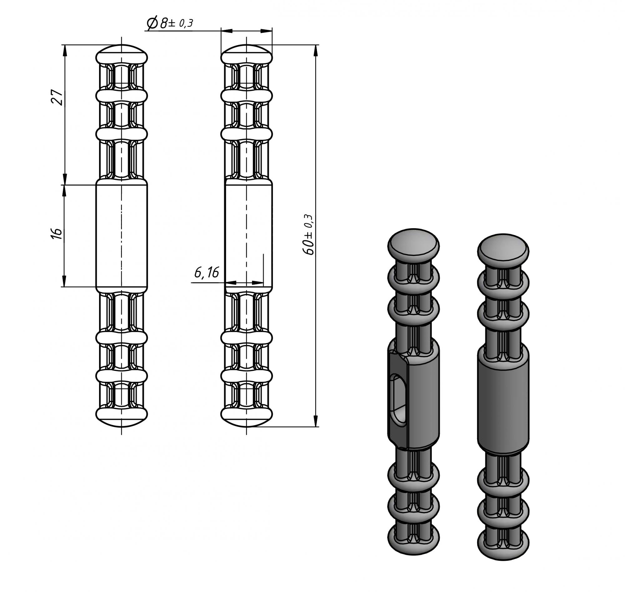 Размер: диаметр 8 мм, длина 60 мм