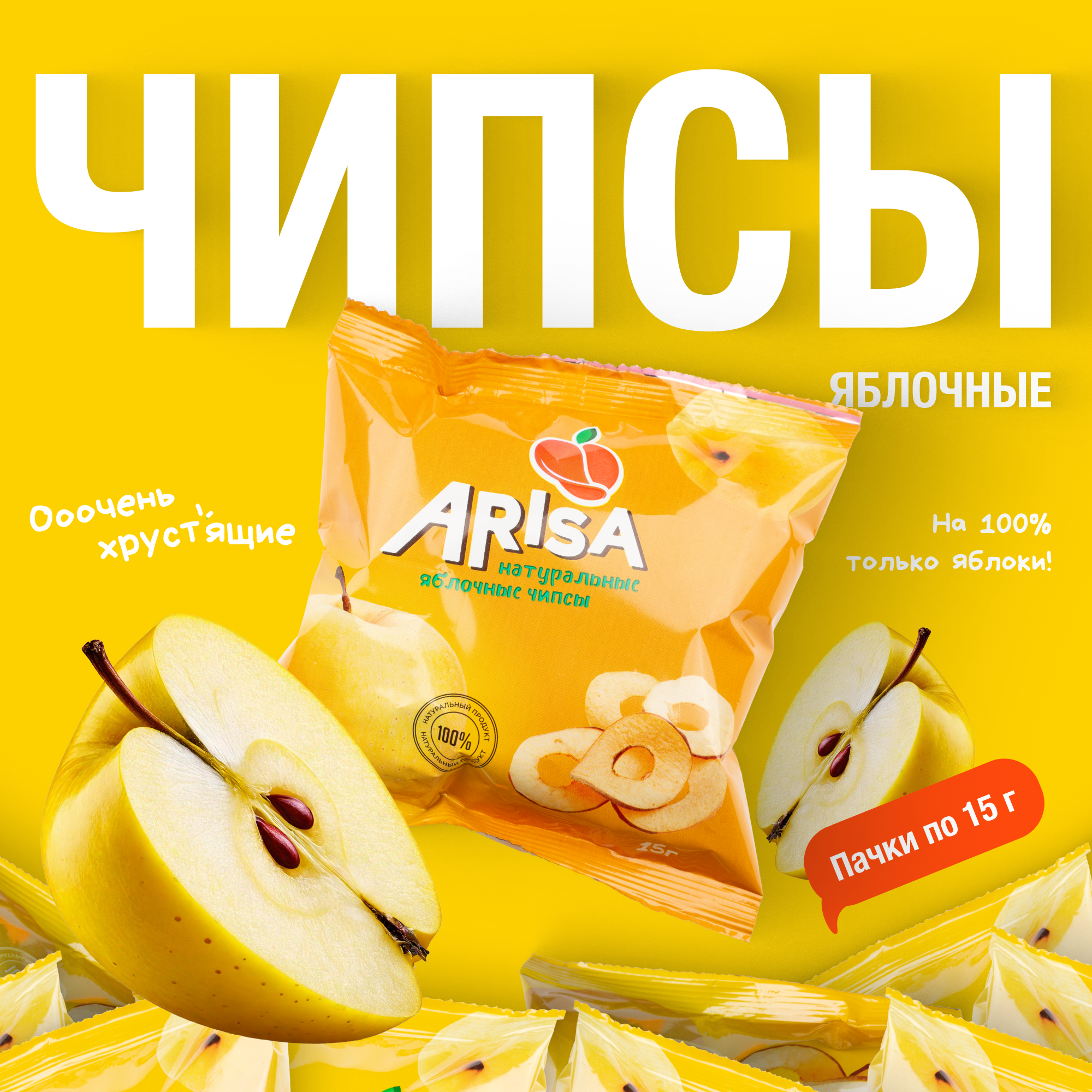 Яблочные чипсы из жёлтых яблок 15 г. / Снеки / Фруктовые чипсы