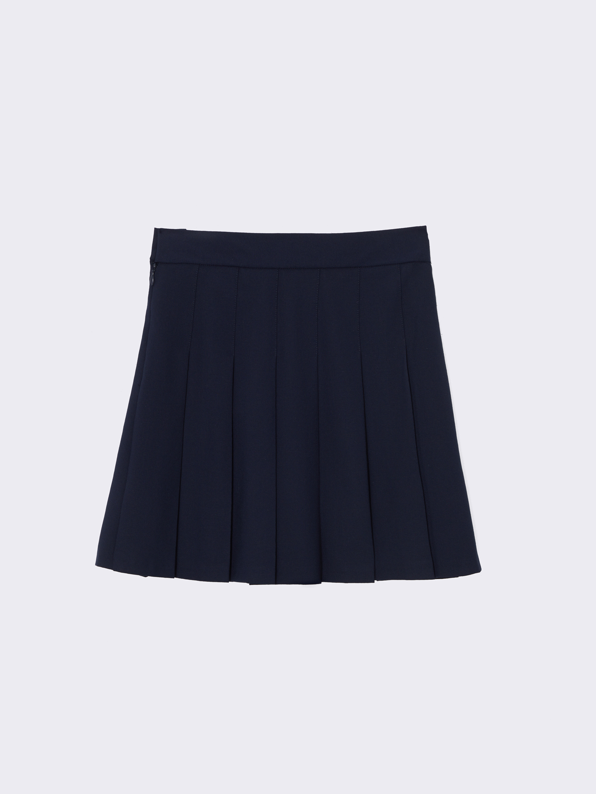 Элегантная юбка тенниска в складку, из износостойкой и устойчивой к смятию поливискозы. Складки частично застрочены Застёгивается на потайную молнию в боковом шве и пуговицу на втачном поясе. Пояс с регулируемой резинкой обеспечивает удобную посадку и комфорт в ежедневной носке. Эластичные волокна в составе обеспечивают комфорт в движении.