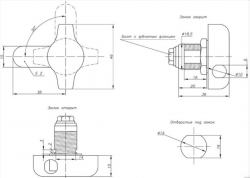 Ручка под навесной замок, высота корпуса 20мм, материал-сплав ЦАМ, покрытие хром, прямой ригель (внтр.центр.длина ригеля 37мм).
