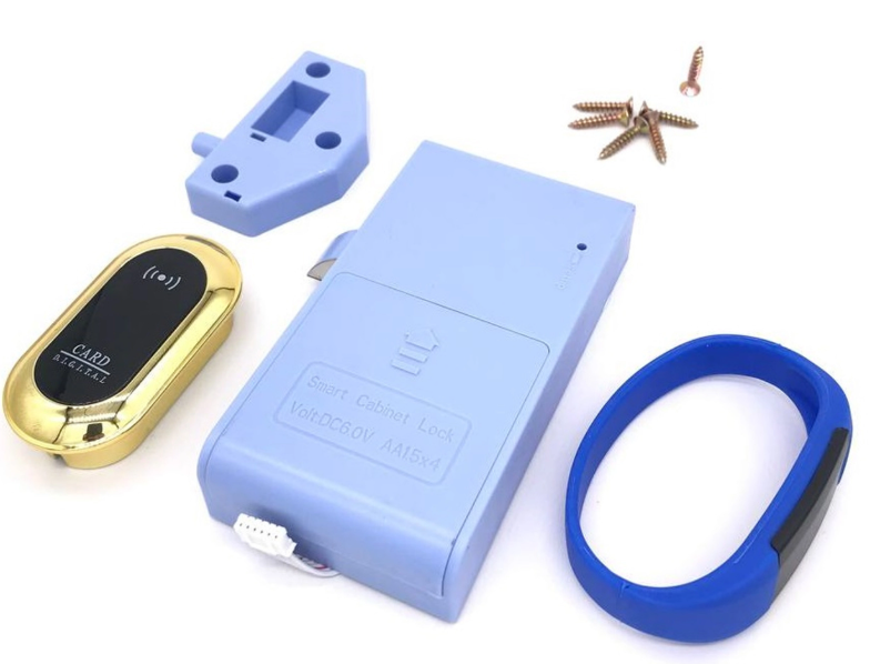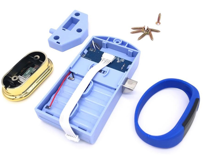Замок защелка электронный, материал корпуса - пластик, в комлпекте ключ-браслет для открывания, крепежные винты