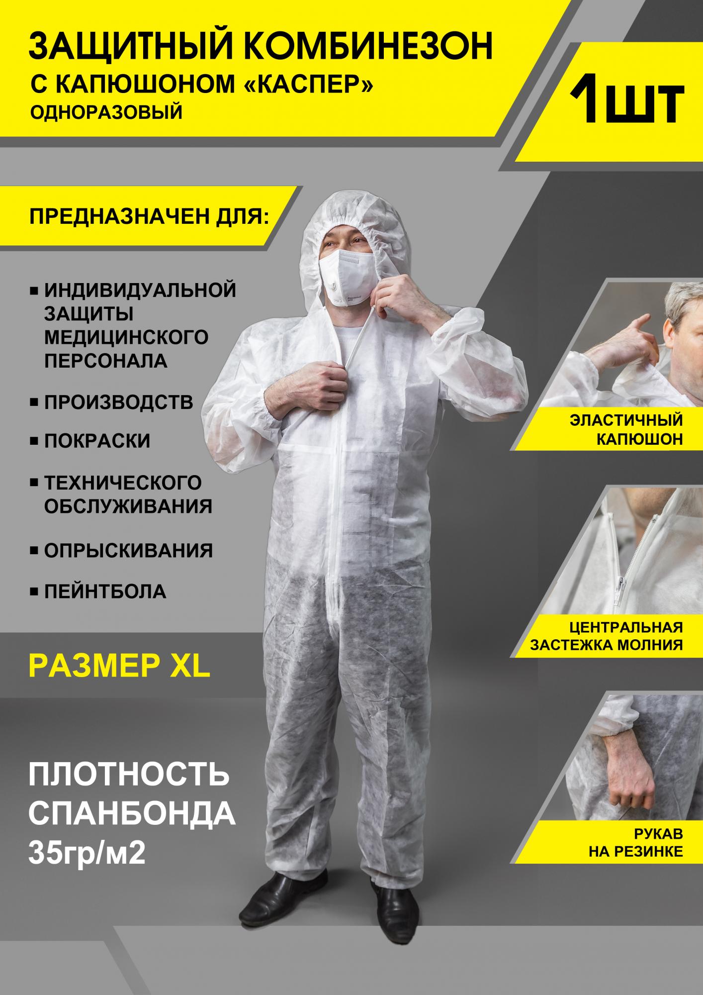 Защитный костюм имеет широкую сферу применения - медицинские учреждения, дезинфекция, малярные работы, работа в мастерской, покос травы и т.д. Костюм одноразовый с капюшоном изготовлен из нетканого материала спанбонд с плотностью материала 35 гр/ кв. м, что создает надежный барьер, защищая тело и одежду от загрязнений. Костюм защитный одноразовый Каспер обеспечивает надежную защиту от воды, масла, грязи и пыли. Мягкий микропористый материал пропускает гораздо больше воздуха, чем обычный полиэтилен, что создает максимальный комфорт в работе.