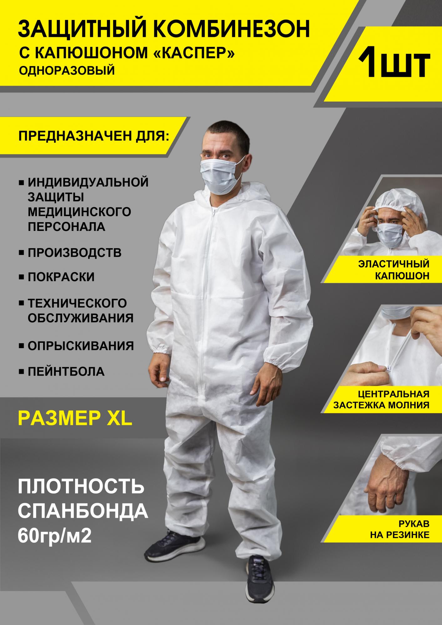 Защитный костюм имеет широкую сферу применения - медицинские учреждения, дезинфекция, малярные работы, работа в мастерской, покос травы и т.д. Костюм одноразовый с капюшоном изготовлен из нетканого материала спанбонд с плотностью материала 60 гр/ кв. м, что создает надежный барьер, защищая тело и одежду от загрязнений. Костюм защитный одноразовый Каспер обеспечивает надежную защиту от воды, масла, грязи и пыли. Мягкий микропористый материал пропускает гораздо больше воздуха, чем обычный полиэтилен, что создает максимальный комфорт в работе.