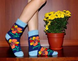 Теплые женские носки из овечьей шерсти с изящным цветочным узором. Подчеркнут вашу женственность и согреют даже в самые холодные дни. Доступны в размерах 3женские шерстяные носки-37 и 38-40.