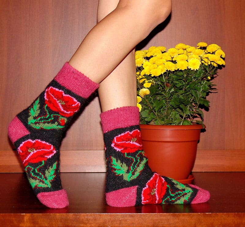 Женские шерстяные носки с рисунком "Мак". Толстые и теплые шерстяные носки в стиле ручной вязки. Овечья шерсть. Оптом. выполненные в модном цвете 202женские шерстяные носки: капучино. Количество в наличии ограниченно.