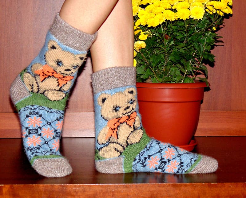 Мягкие носки из овечьей шерсти с очаровательным рисунком медвежонка. Эти носки обеспечат тепло и уют, создавая атмосферу домашнего комфорта. Доступны в размерах 3женские шерстяные носки-37 и 38-40.
