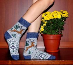 Женские шерстяные носки с рисунком "Олени в лесу". Хит рисунков в 90е = хит нового зимнего сезона. Овечья шерсть. В наличии и под заказ. Рисунок выполним в любых цветах. Торопитесь! Количество в наличии ограничено.
