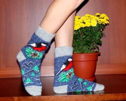 Женские шерстяные носки с рисунком "Снегирь и рябина". Хит продаж всех времён. Носочки в данном рисунке актуальны всегда, а с 2024 года ещё и ультрамодные. Натуральная овечья шерсть. Тёплые и тонкие. Сочетания качества и эстетики. Доступен к оптовым продажам.