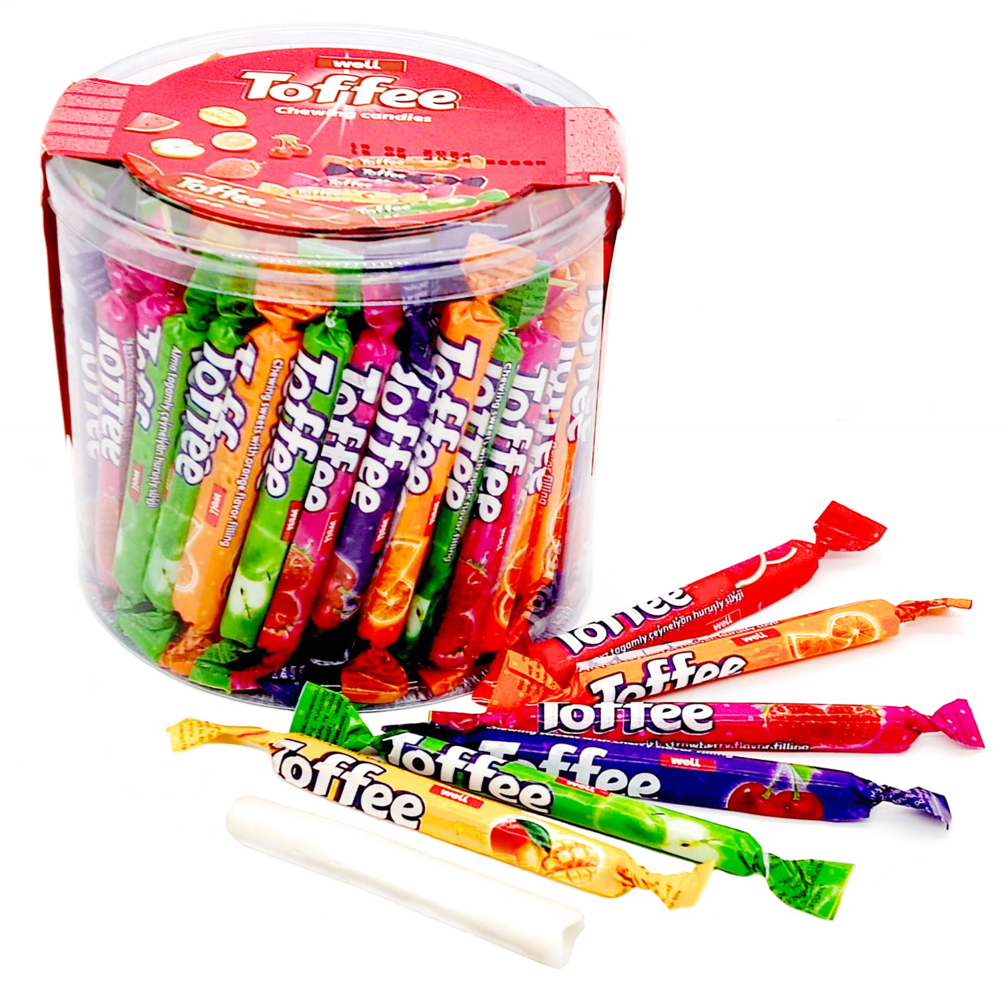 Жевательные конфеты Toffee Stick — это вкусные и ароматные лакомства, которые сочетают в себе сладость конфет и жевательность резинки. Эти конфеты изготовлены с добавлением натурального сока, что делает их особенно привлекательными для любителей вкусов. Насыщенный вкус: Конфеты обладают яркими вкусами, который оставляет приятное послевкусие.