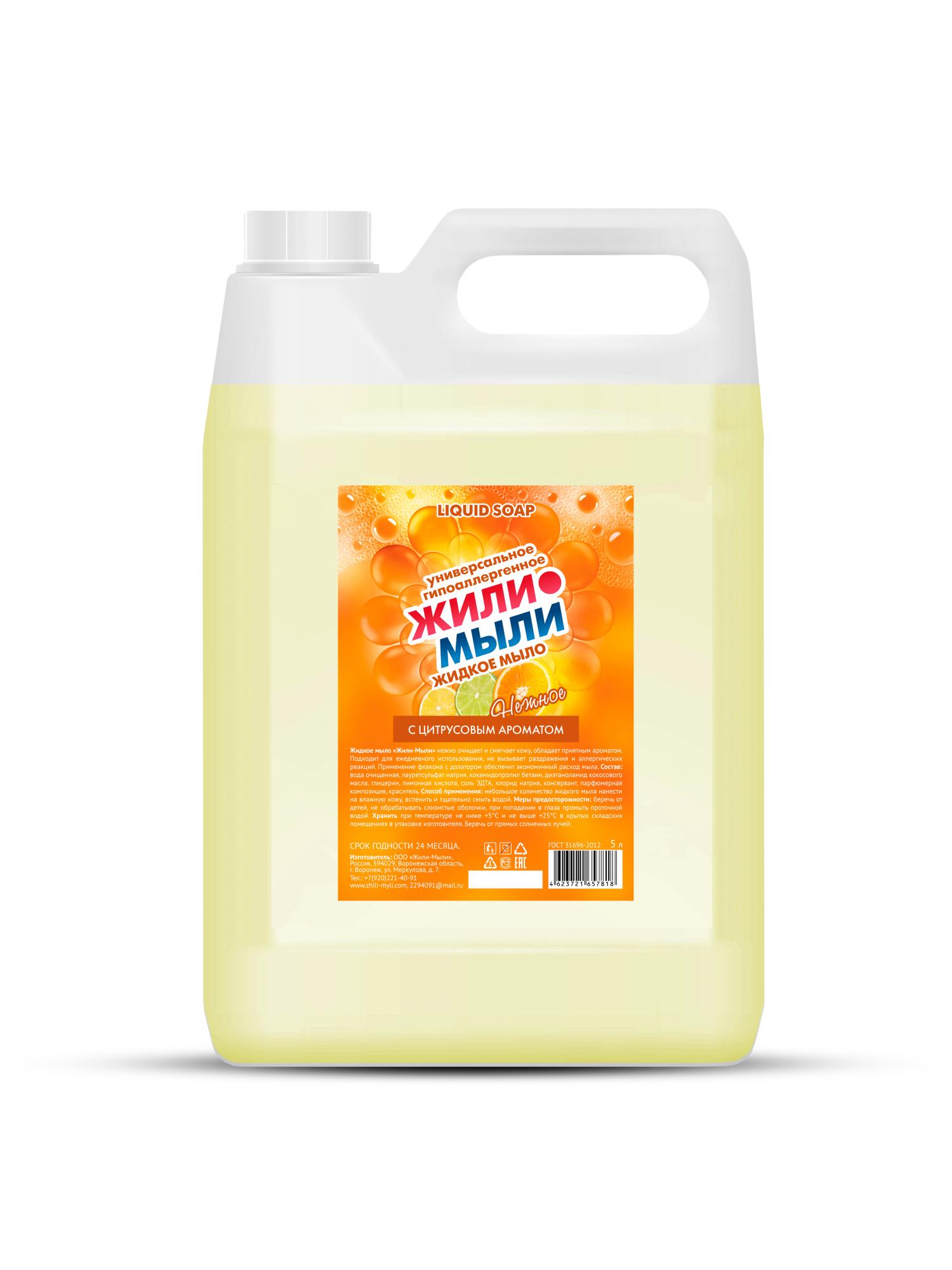 Жидкое мыло «Жили-Мыли‎» с Цитрусовым ароматом 5 л, Канистра